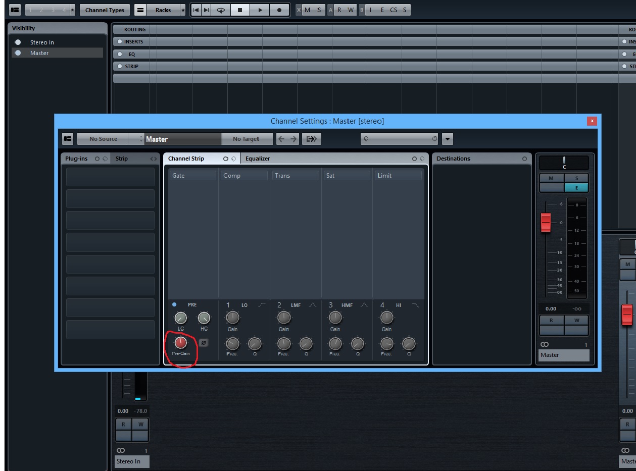 Zerocool спасибо за ответ) Я имел ввиду вот что, когда нужно сразу все каналы убавить , чтобы не крутить и не убавлять каждый канал, я это делаю ручкой pre-gain в Cubase (она на скрине). При этом на мастер канале микшера громкость остается на нуле (а pre-gain убавлен на -3 дб. на фото), значит это какой сигнал убавляется, выходной? Как это можно реализовать в Studio One 3?