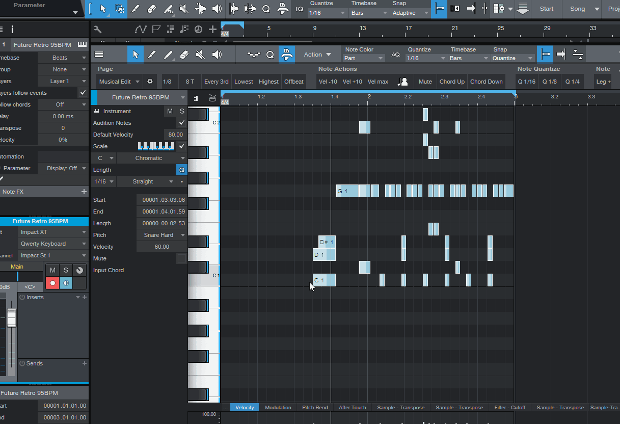 Функция с растягиванием нот, не та, как на моём примере.В Studio one, сделали равное растояние между захватом курсорa. Фишка в плавном распределении ускорения или замедления темпа, от первой ноты слева, до крайней правой, вот что нужно. Как, это можно сделать в Studio one?