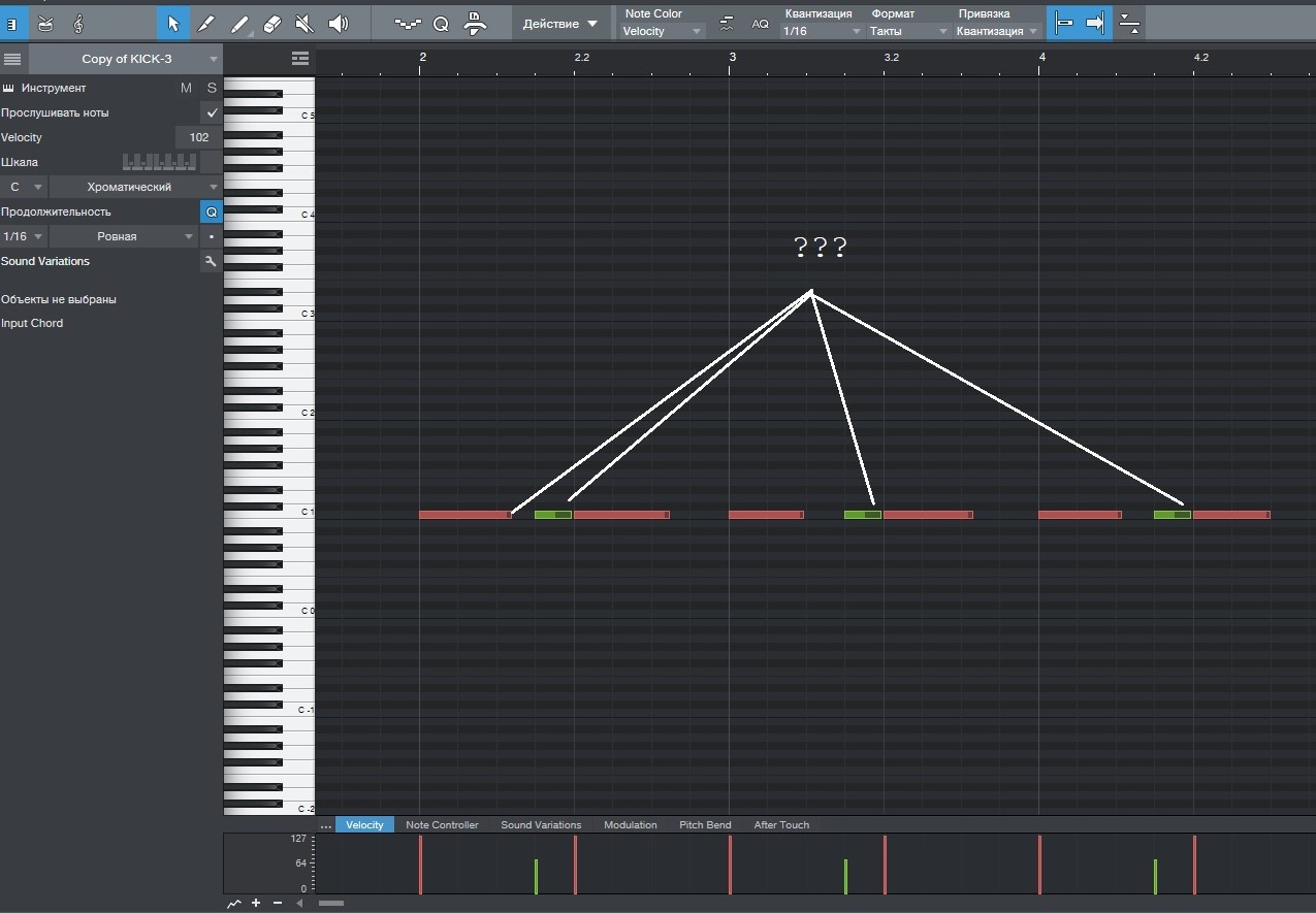 Раз уж речь о Velocity - можно ли включить, как в Cubase, при редактировании велосити (таком, как на Вашем скриншоте), чтоб появлялась горизонтальная линия-подсказка для визуального ориентирования по другим нотам?