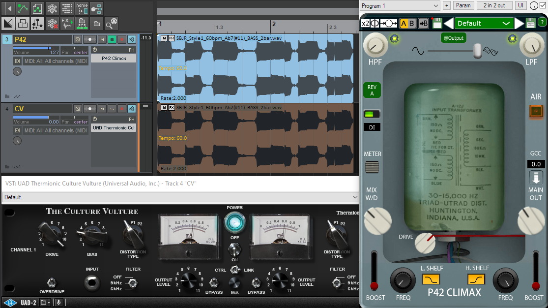Андрея вышел обзор и я сделал быстрое сравнение с P42 Climax Line Amp. Это не дополнение к предыдущему тесту, так как настройки другие и здесь я наоборот с помощью cv имитировал p42. И знаете что, cv легко справился, что может говорить и о его универсальности. p42 суть более плоский (на мой слух на уровне ощущений, но по форме волны сильно заметно), а по характеру искажений они близки как братья близнецы. Но по органам управления они всё же разные - у cv больше возможностей по искажениям, у p42 - по фильтрации.