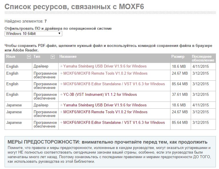Программное обеспечение MOXF6/MOXF8 Remote Tools V1.0.2 for Windows 24.67 MB 3/12/2015