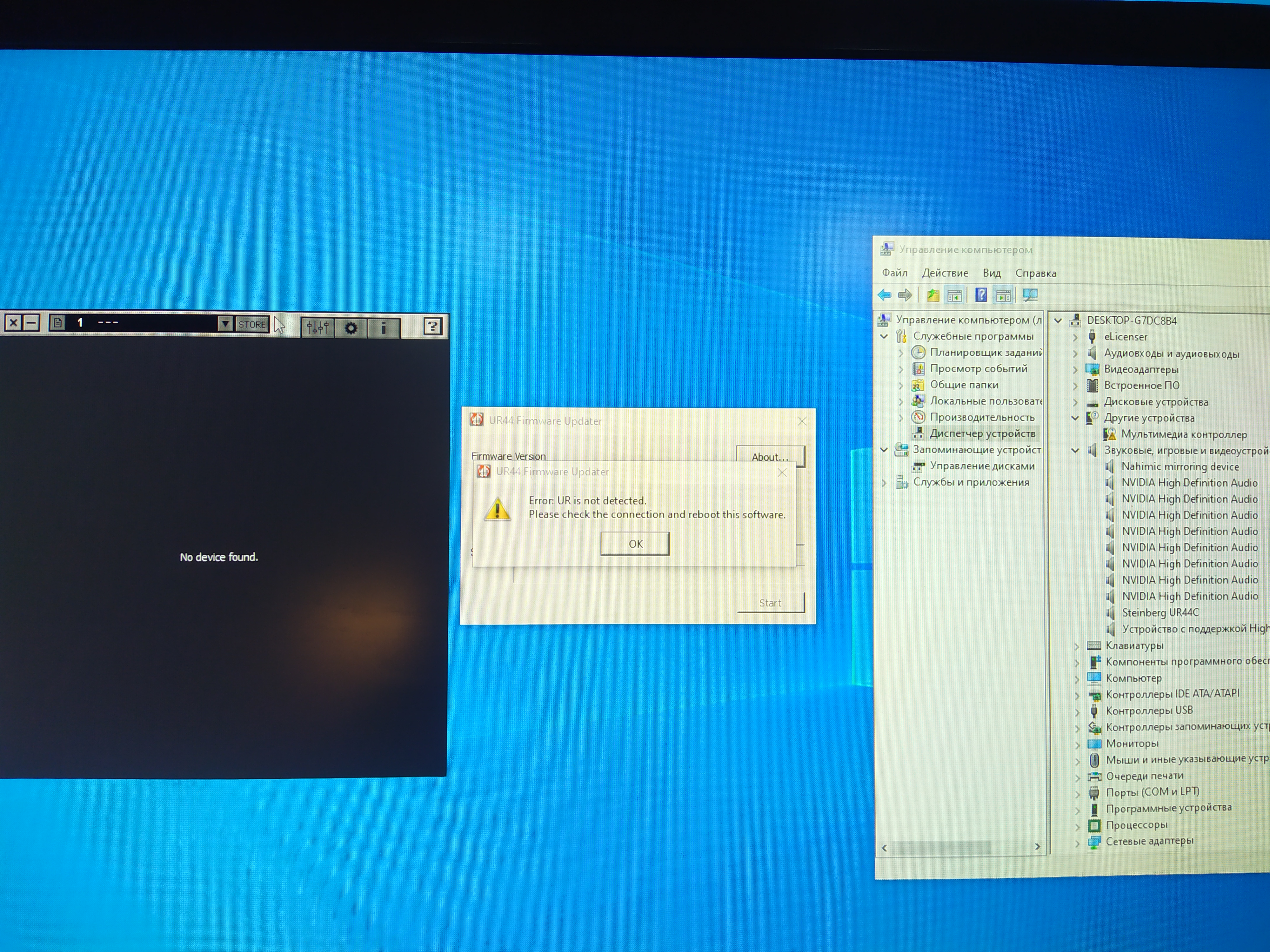 Доброго вечера всем! У меня какая-то непонятная проблема, Купил ur44, качнуть с оф сайта дрова, установил все по инструкции на свежую систему w10 (последние обновления)но dspmixfx не видит саму ur44, пишет no device found! В диспетчера все норм, сигнал проходит норм, в Кубе тоже все норм, но управления нет! Помогите, кто может сталкивался с таким, не могу понять в чем дело!