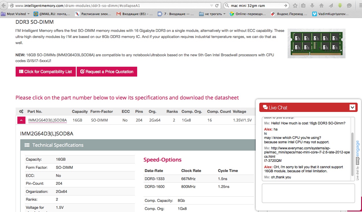 сейчас есть, ссылку написал пару постов ранее, а также есть на сайте Micron http://www.micron.com/parts/modules...atpart={09C9B382-E21E-4EFD-B325-D279C670B786} В случае с миниками, насколько я понял, 32гб можно реализовать только в случае, если ставить 4 планки. А 4 планки можно использовать, если проц сидит на особом сокете - rPGA (такие используются в iMac) А в случае мака мини используется сокет BGA, который не позволяет использовать две планки на один канал.