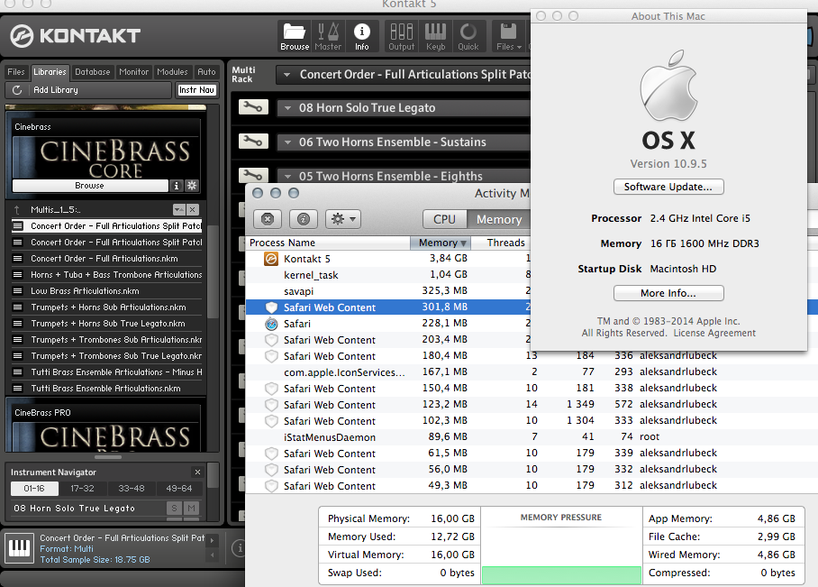 Спасибо! Вот больше 8гигов. Все зависит какие семплы грузить. Но нету у меня сейчас холивудов.Это получается что у меня все нормально работает?