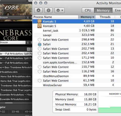 Вот здесь. Открыл Контакт загрузил туда мульти инструменты Cinebrass штук пять. Получилось 64 инструмента в одном контакте. После этого пишет что недостаточно места. Наверно он может грузить только 64 инструмента. Я так много никогда не грузил. Сам патч весит 16гигов. Но в мониторинге показывает 4гига. Я могу загрузить лоджик где будет ни один контакт, а больше. Как загрузить в контакт больше 64 инструментов я не знаю, я же открыл приложение, а не в самом хосте.