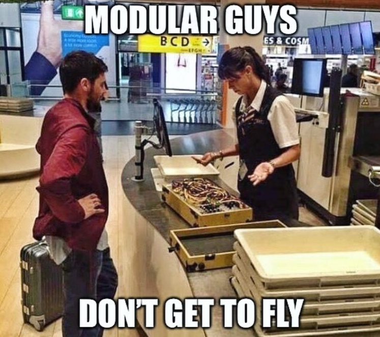 модульная тематика все же, кмк, вовлекает людей сложными модуляциями, выстраиваниями каких-то замысловатых взаимодействующих сочетаний триггеров-напряжений, огромных самоэволюционирующих звуковых пространств, возможностью построения "несуществующих" звукогенерирующих устройств и т.п. экспериментов