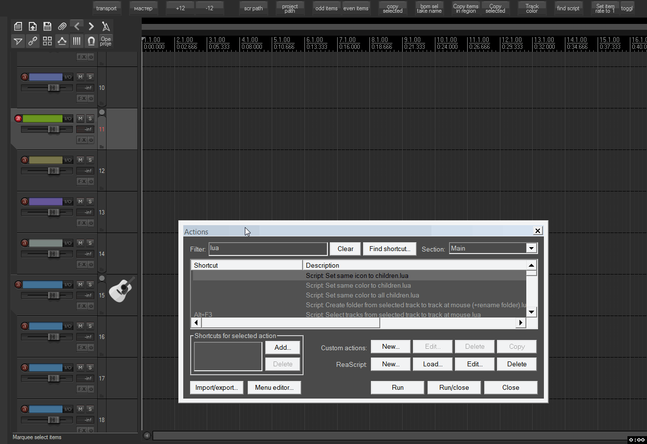 4. Они появляются только на этом этапе, после того как сработал кастом, счетчик изменений проекта рипера увеличил свое значение на единицу, SWS Auto color/icon пробежал по трекам, нашел новый трек с новым названием и только сейчас он дает ему цвет и иконку.