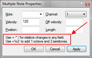 Точно так же можно менять и другие параметры.Чуть позже выложу для велосити и перемещения нот влево-вправо по сетке.