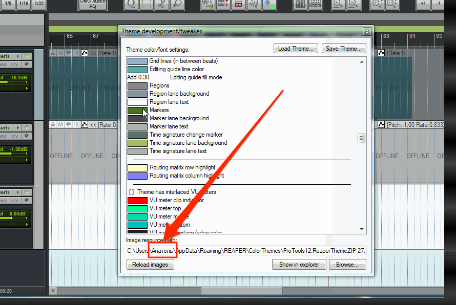 Привет, решил изменить цвет маркера и миди нот. Захожу в Theme Development: Show theme tweak/configuration window, меняю, нажимаю Save Theme открывается папка Color Theme но то что я хочу сохранить с расширением .ReaperTheme ( без ZIP) и при сохранении такого файла в этой папке не оказывается..