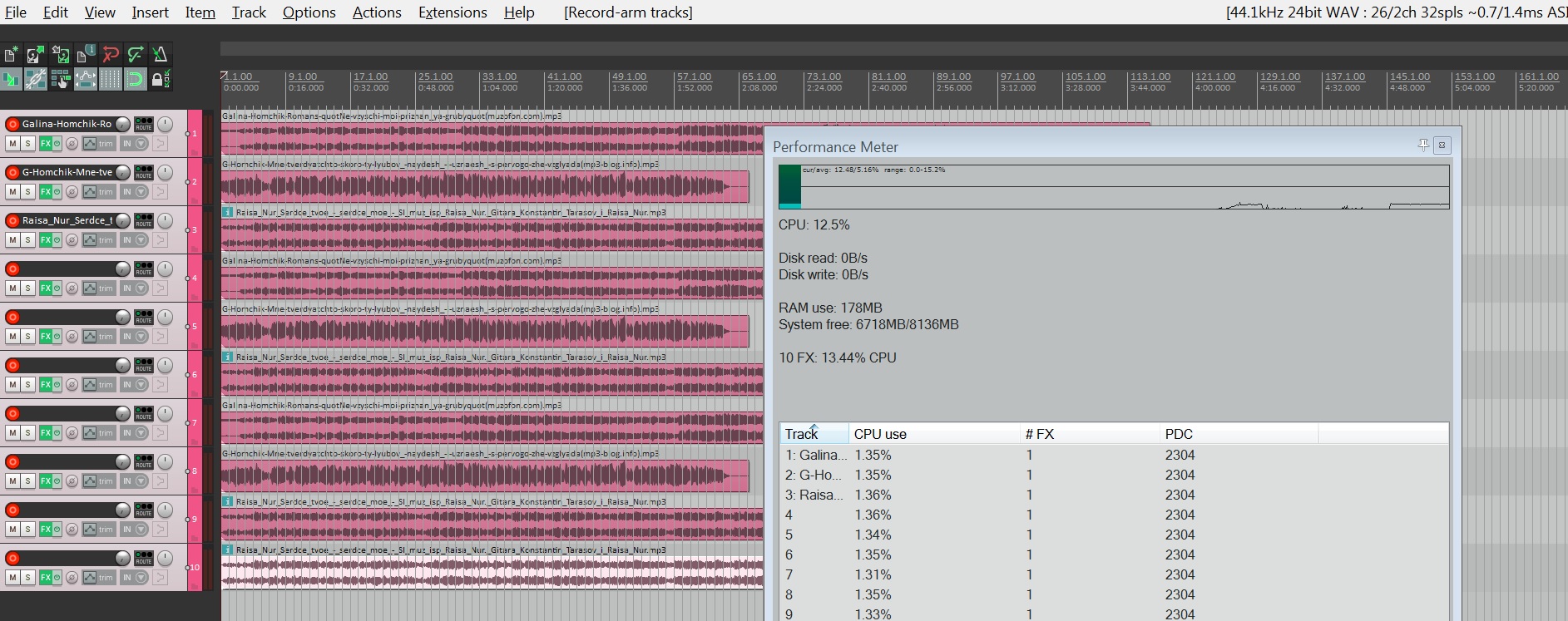 upd: всё, нашёл... :) с записью на 32-х семплах RT-овер100%, да, но в реальной жизни сие не используется... лично мной, по крайней мере :)