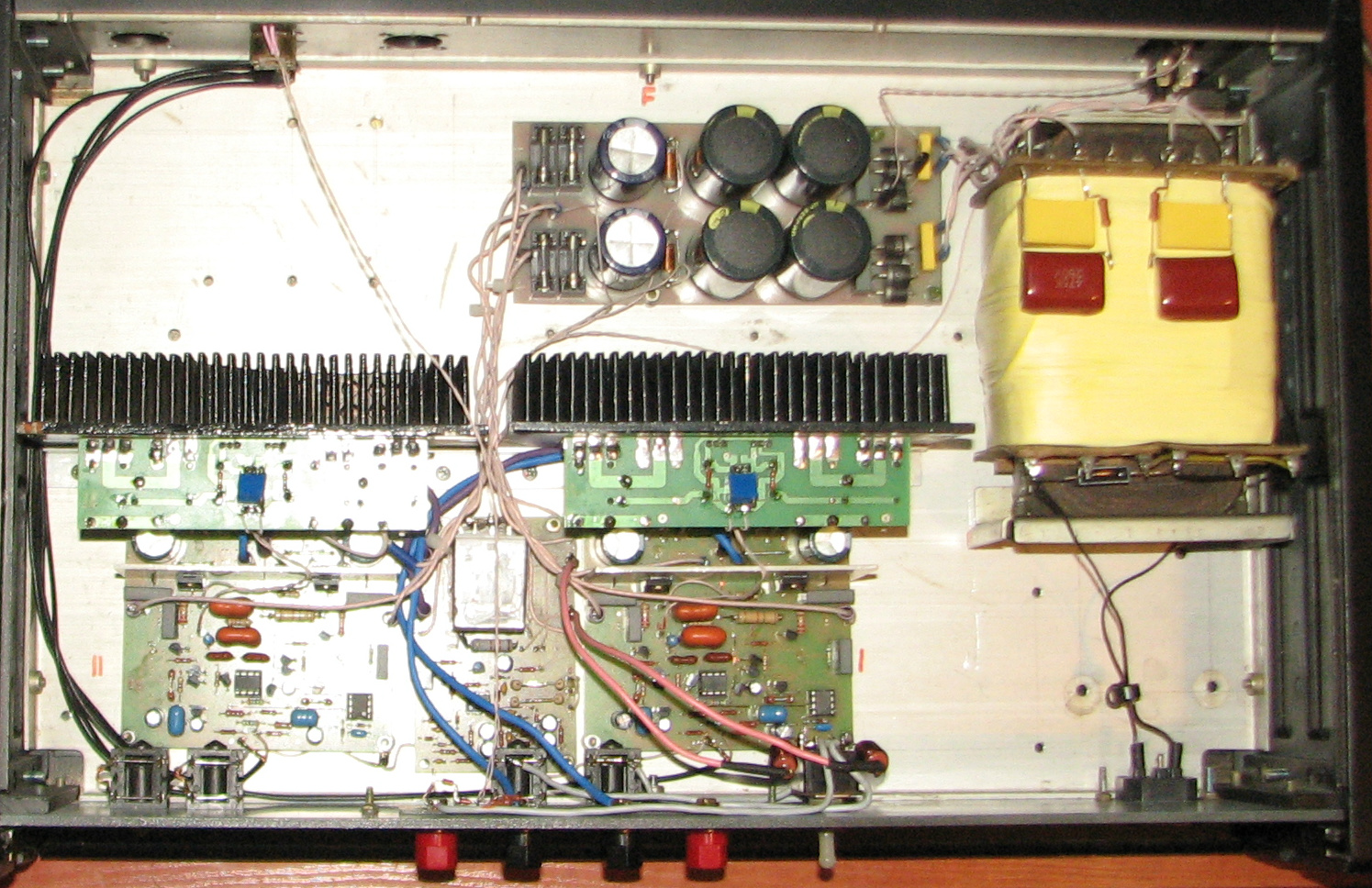 @Long, глядя на фотки - думаю изначально. Насколько видно по фотографиям, блок питания общий на два канала, а это значит что есть земляная петлища до другого прибора через межблочные кабели, кстати небалансные. А также очень "радует" расположение РГ с кабелями через всё устройство. Ну и прочее разное, вроде прекрасного заземления прямо у плат тонкими длинными проводами итп., вроде выходного каскада на проводах... Конечно на него(усилитель) будут даже фазы луны влиять. Да простят меня автор сего детища и текущий его хозяин, но это конечно "пионерия".