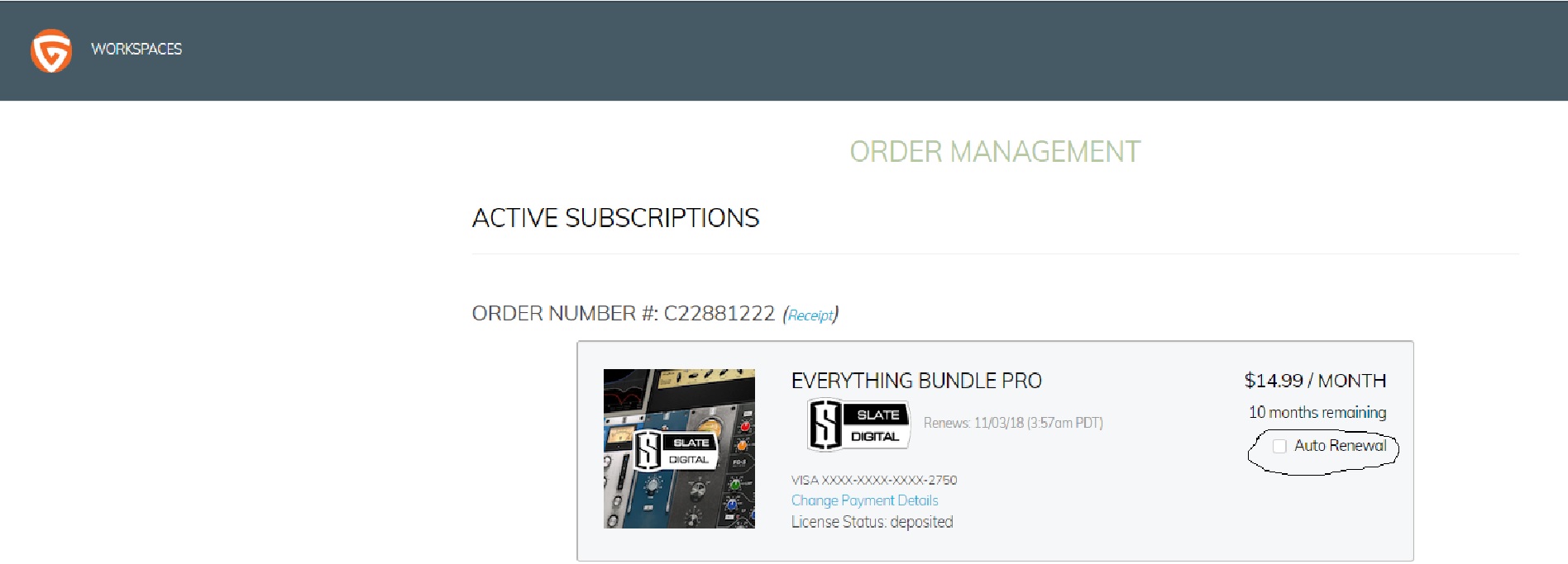 Ребят, ну ткните слепого- где отменить автоматическое продление подписки на Слейта? Помню, сам ставил галку renew. Теперь, по истечению года не нахожу. Пожалуйста. Гобблеровский менеджер не стоит, может, в нем?