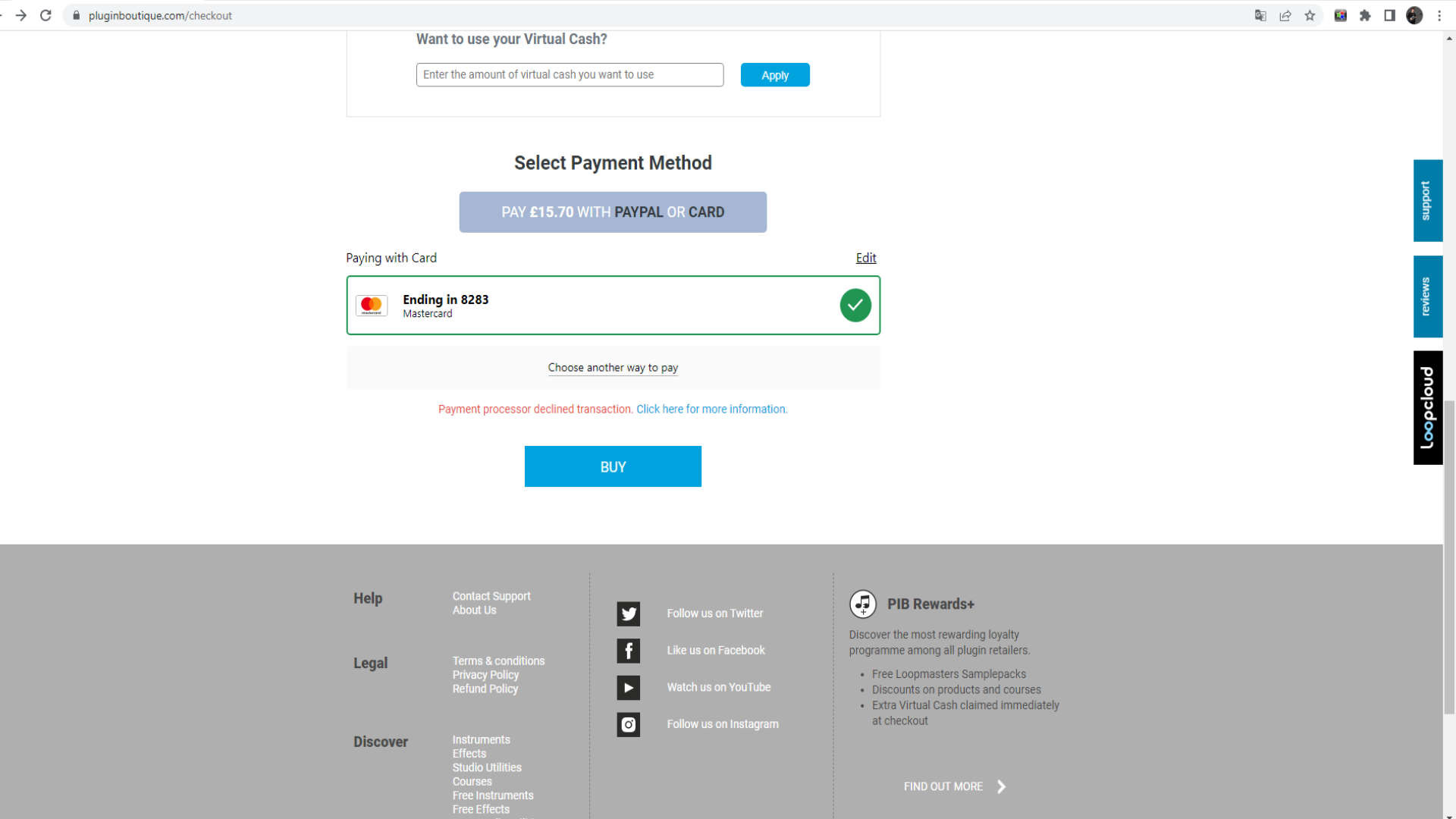 При покупке на plugin boutique через сервис вот такое сообщение появляется-и платеж не проходит.