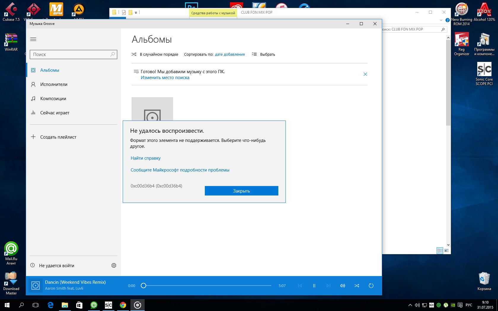 Мужики как сделать что бы звук работал на десятке? Выдаёт ошибку при воспроизведении звука любым плэером. В кубике всё работает чётко.