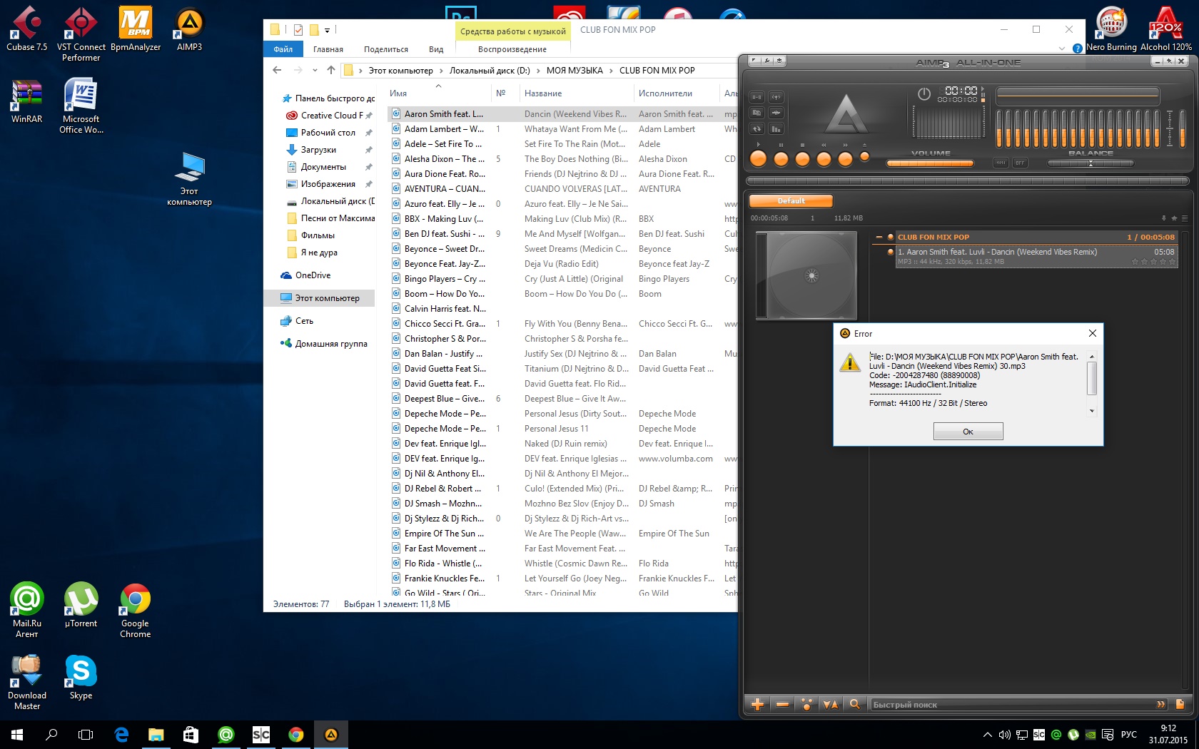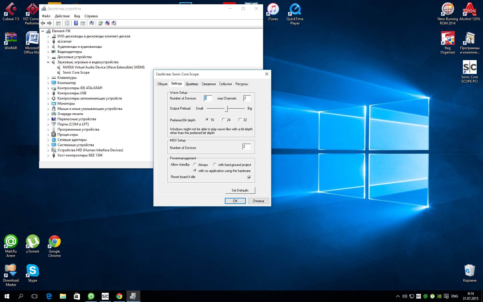 пошли первые баги.... интересно получается... когда в настройках драйвера Yamaha выставлен сэмплрейт 96 кГц, плеер не воспроизводит файлы (фубар). на восьмерке небыло такого. все читало и игралось при любых значениях сэмплрэйта.. драйвера последний с сайта штайнберг... и проекты что в 8 нормально тянуло при буфере 512 тут надо увиличивать до 1024, иначе треск и тормоза... наверное надо будет откатываться назад.. потестю пару дней еще..