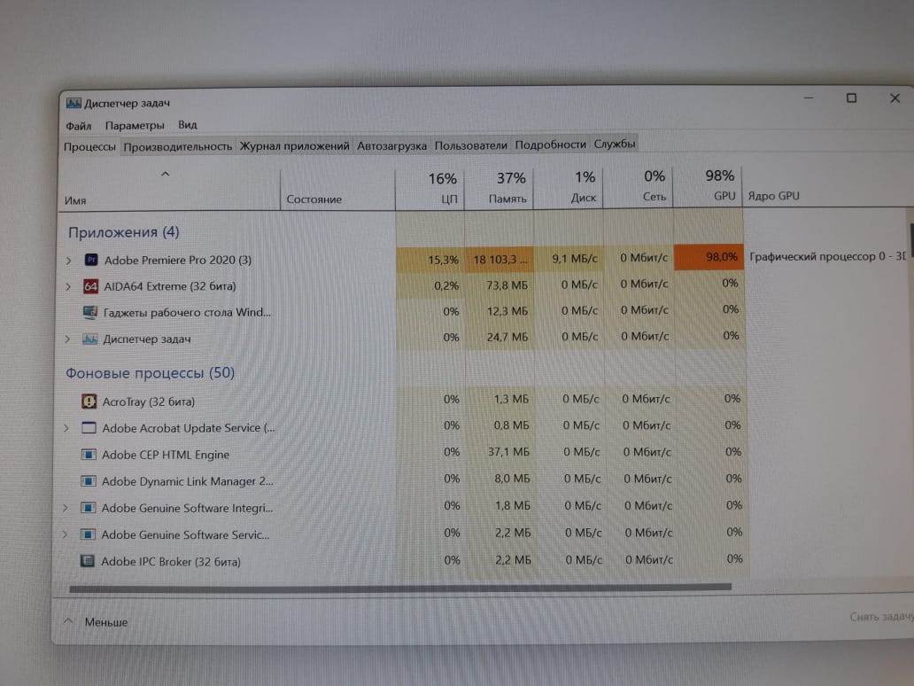Недавно в Премьере монтировал док. фильм в ноуте, с топовом проце от рязани 4800н и с видяхой 1650ти, в одном месте проекта где несколько слоёв и эффект кей (вырезка фона) изображение видео стало тормозить, стробить, на превью, работать стало совсем некомфортно и решил попробовать делать проект премьера на пк 12700к, думаю а вдруг даже без видяхи потянет плавнее превью (предосмотр). Запустил и на моё удивление в ПК всё гладко без тормозов и это без дискретной видяхе, всё на одном проце... потом когда рендерил проект заглянул в диспетчер, а там нагрузка самого проца 15-16% и вся основная нагрузка идёт грааф. чип... Графиченский процессор получается полностью оптимизирован под нужды видеоредактирования.Посмотреть вложение 209944