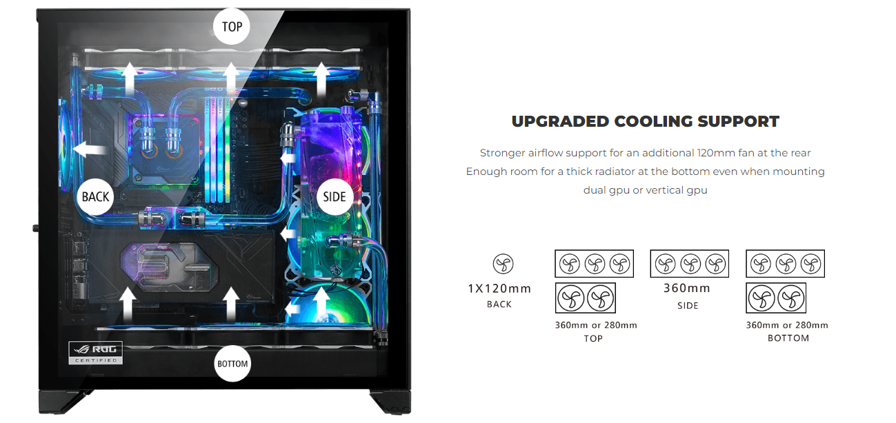 Иначе тишина превратиться в бесконечный рев кулеров , потому что при плохом Airflow ...даже 420 ая водянка не справится с отводом тепла от проца , плюс снизу все это еще будет греть видеокарта ... и вместо относительной тишины получите 2000 оборотов на всех кулерах ....