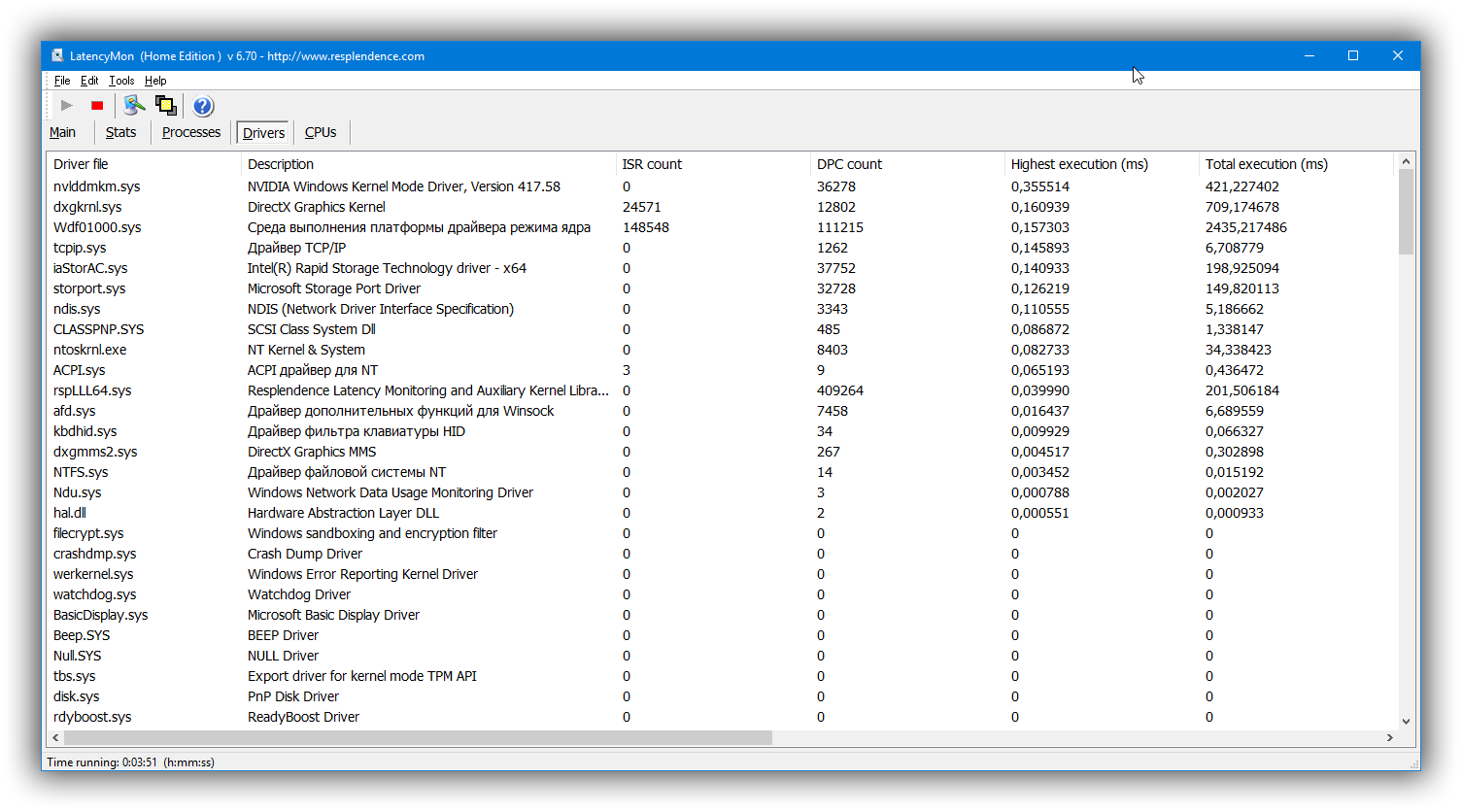 @dimm, ну вот тут и ПРЕКРАСНО видно, что ХУДШИЙ из элементов вашей системы, у которого в три раза большие аппетиты на системный буфер DPC, чем у всех прочих - это NVIDIA драйвер.