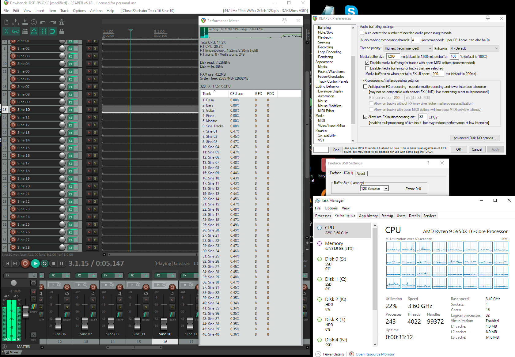 буфер 128 (или условные 5 мс ) зависит от интерфейс ( у меня на рме 5 ) ..., асио гард рипера выключен )