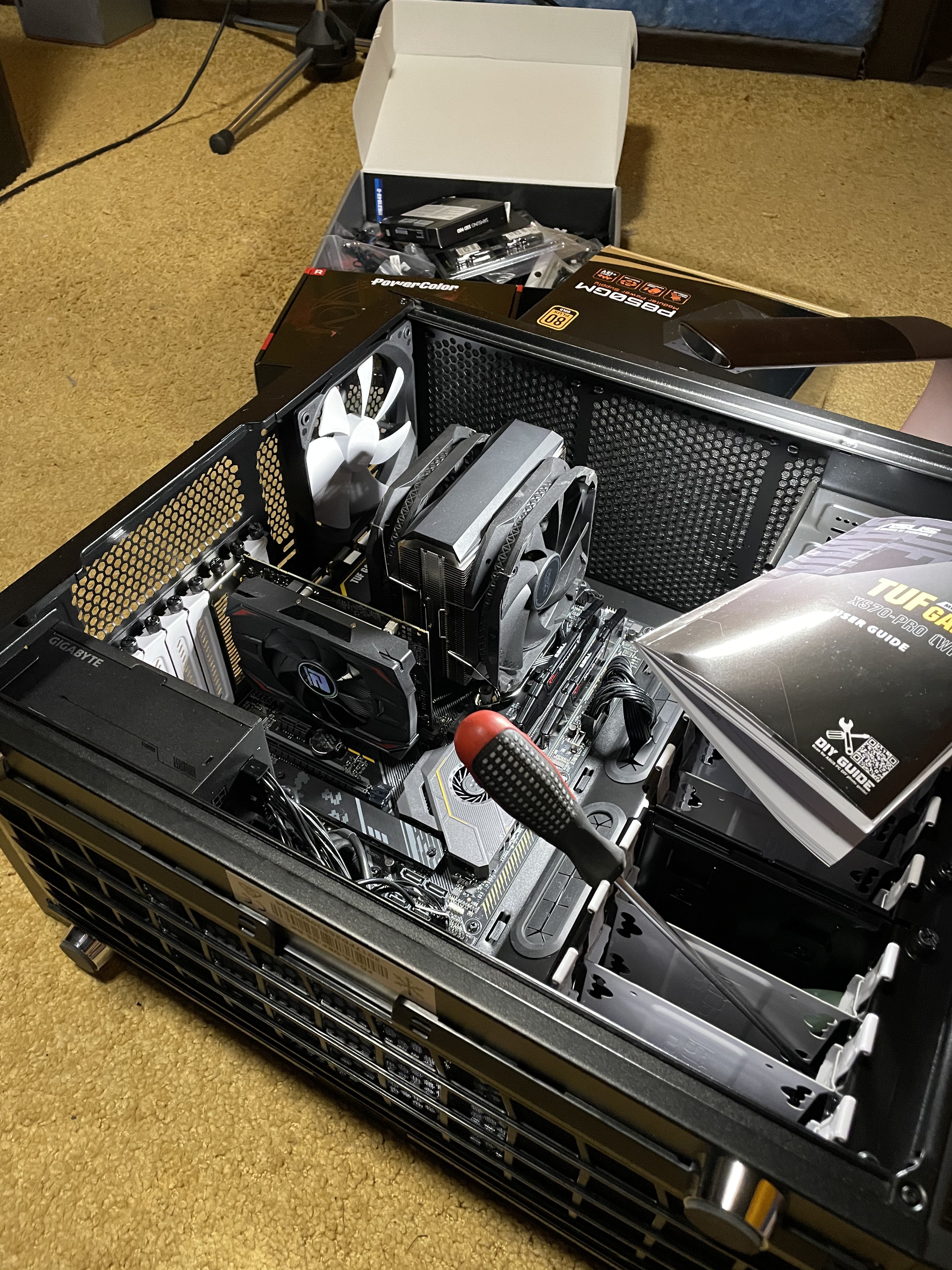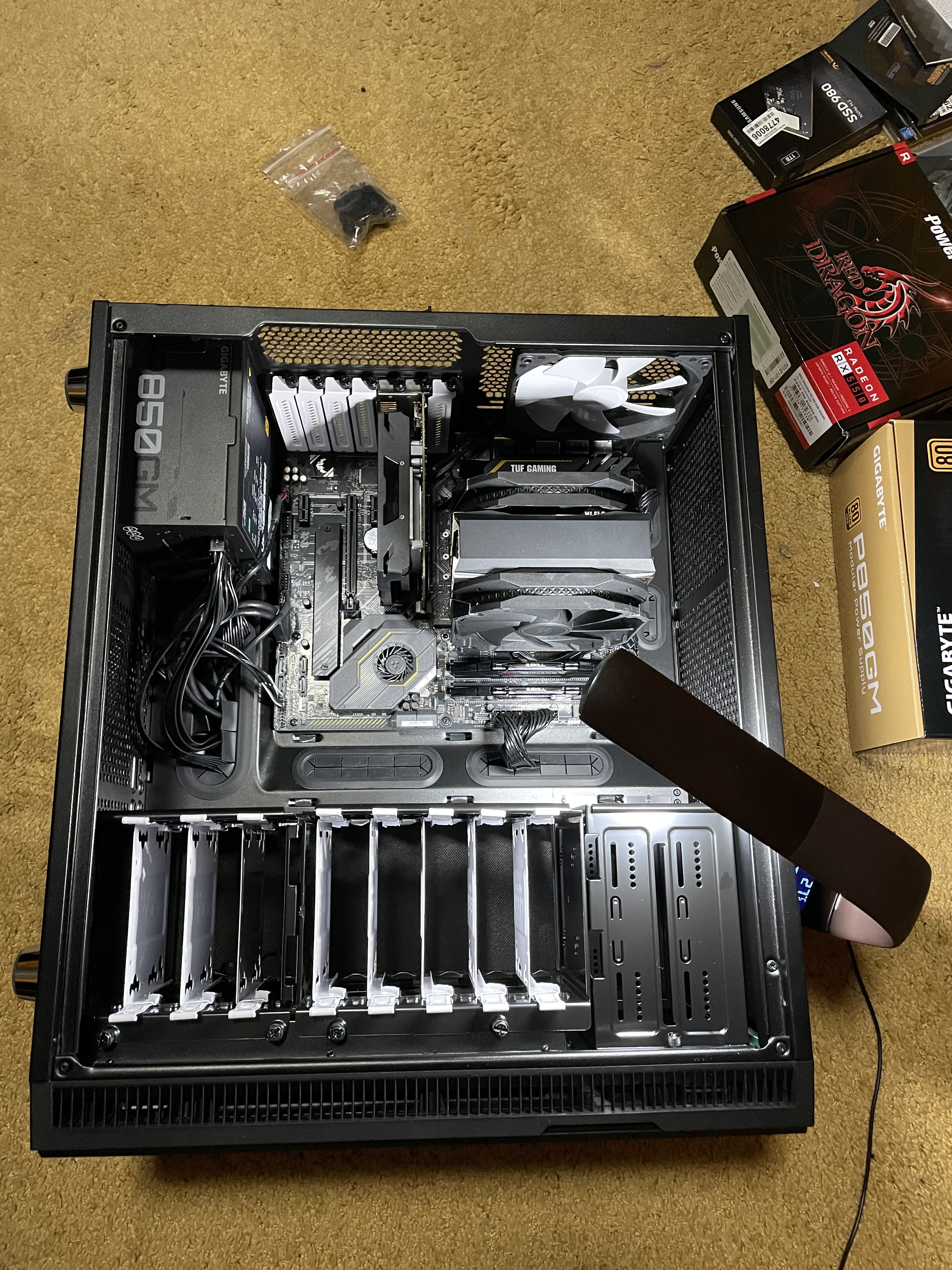 Башню по другому в этом корпусе не поставить,но передняя панель с воздухозаборниками,получается на сквозь продувается.