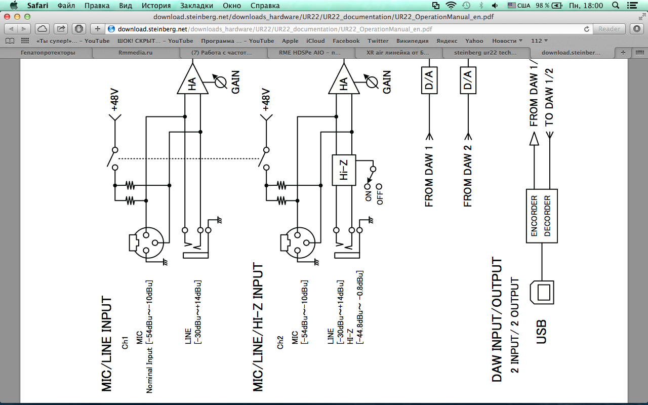 @Nikasak, На XLR в UR22 максимальный уровень входного сигнала -10 dBu, а на Jack +10 dBu, вот отсюда и пляшите, то есть нужно именно джек задействовать.