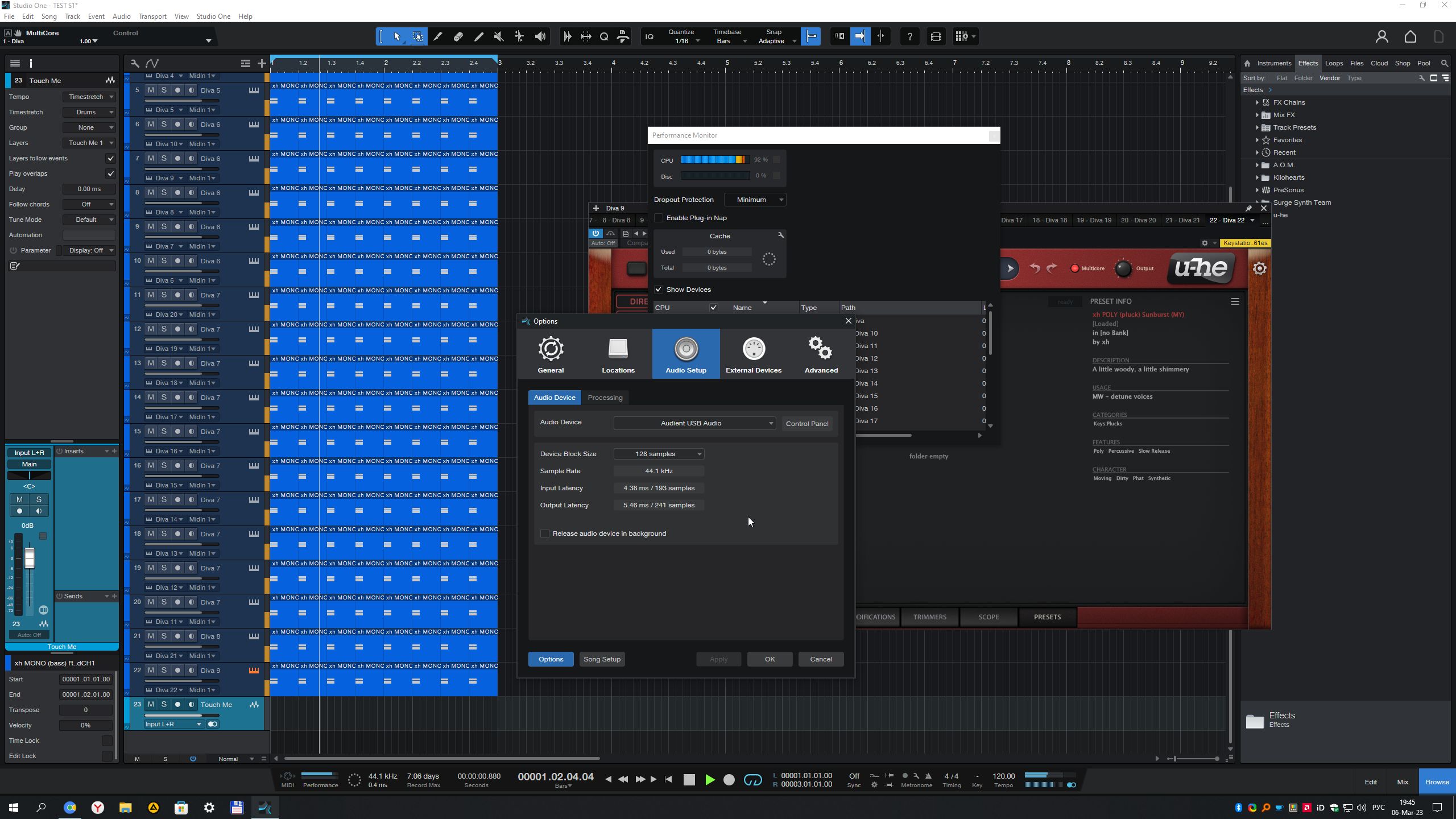 Я хз как в Аблетоне монитрить дропауты не на слух, так как на 100 дивах нагрузка на проц 200%, но все играет. Хрипит, но играет.