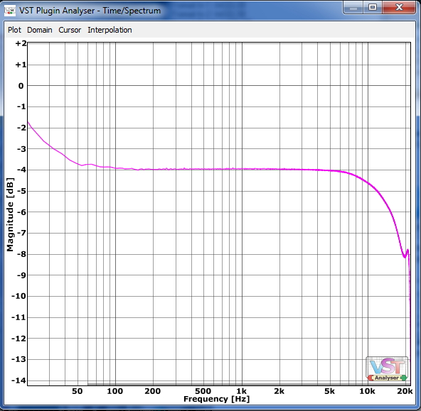 Я не знаю, как это работает. Сейчас из любопытства прогнал свой доморощенный Alesis, кроме верха и низа (буст по низу похож на ошибки измерения, он остаётся даже когда компрессор из сети выключен), как я описывал выше, АЧХ прямая. Причём, хоть при 0 GR, хоть при -20 она неизменна.Мне вот интересно, как можно закомпрессировать сигнал без изменения его спектра? Там же после компрессора спектр вообще дышать начинает во времени на разных частотах по разному