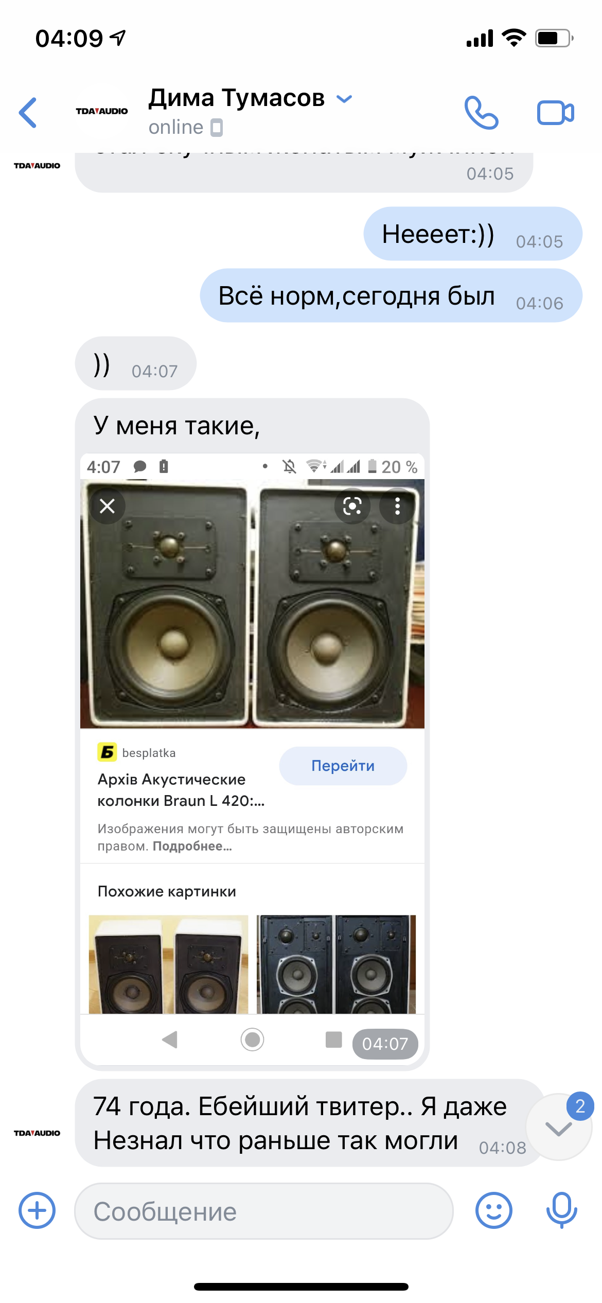 Ну надеюсь расскажешь потом .Во что называется,списался,он мне Braun Lautspreher олдскульный вышлет потестить))