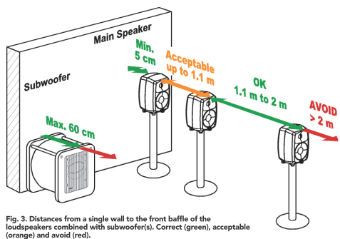 У саба всё просто - в силу того что он обычно располагается на полу, то отражение от пола вызовет провал на частоте порядка 500 герц, а то и выше. А так как на этой частоте саб уже не играет, то и на влияние отраженки можно забить.