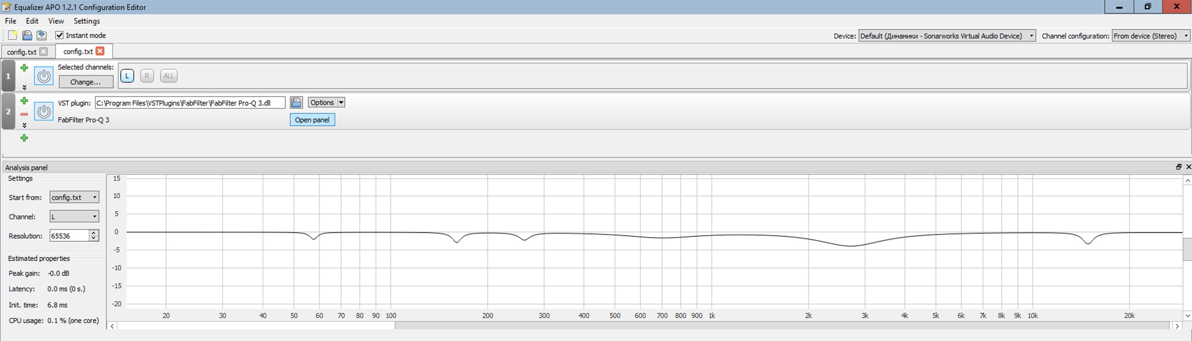Чтобы изменения, которые вы сделали в АРО работали, необходимо чтобы они были сохранены в виде файла config (который лежит в папке EqualizerAPO\config) и должны отражаться в "Панели анализа" внизу - если там ровная прямая, значит, изменения не активны. Сами настройки можно хранить в файлах с любым именем.