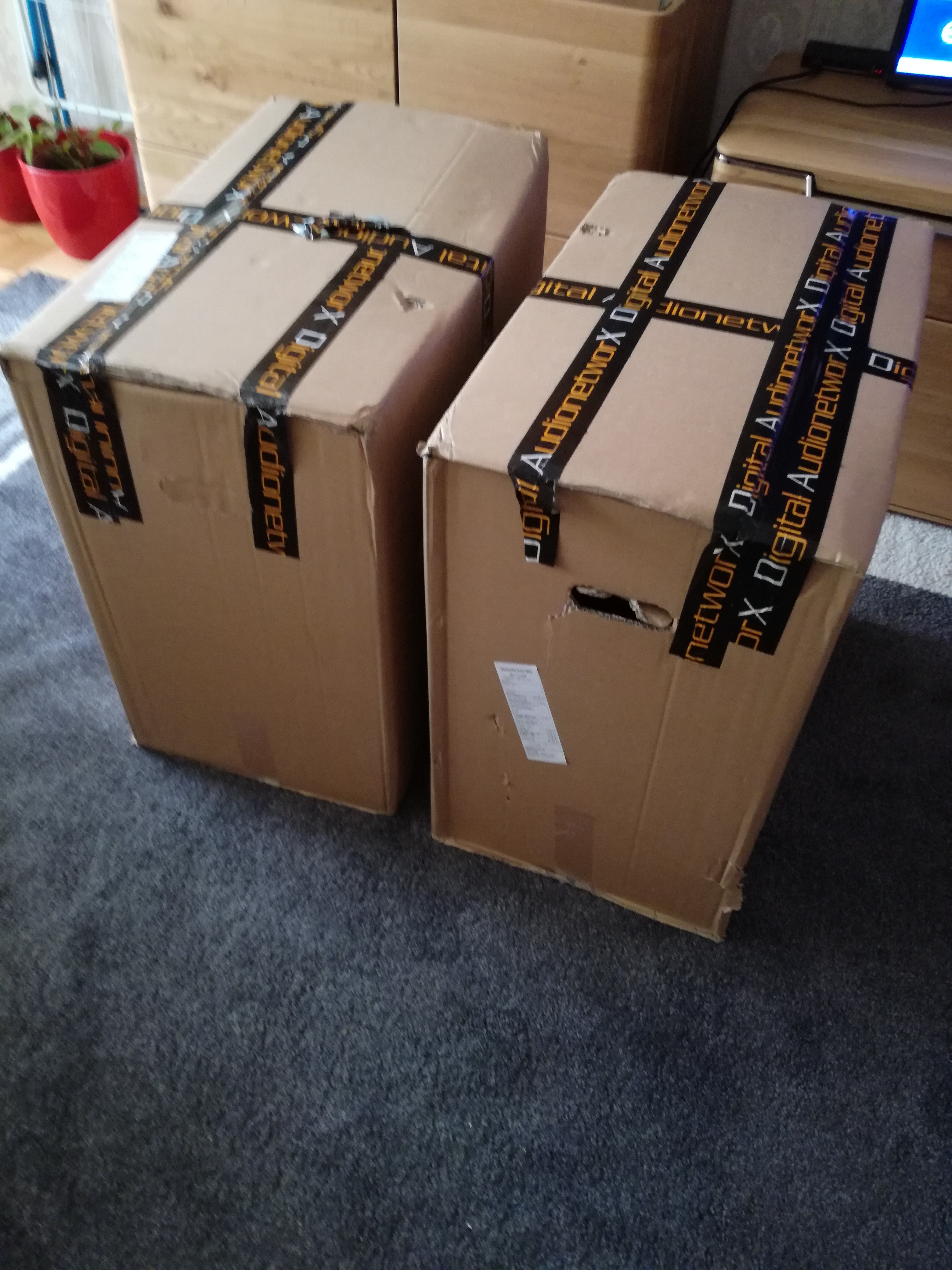 Нет с другого магазина б-сток покупал. Вышло на 150е дешевле новых. Приехали в нереально огромнных коробках примерно 1х1м