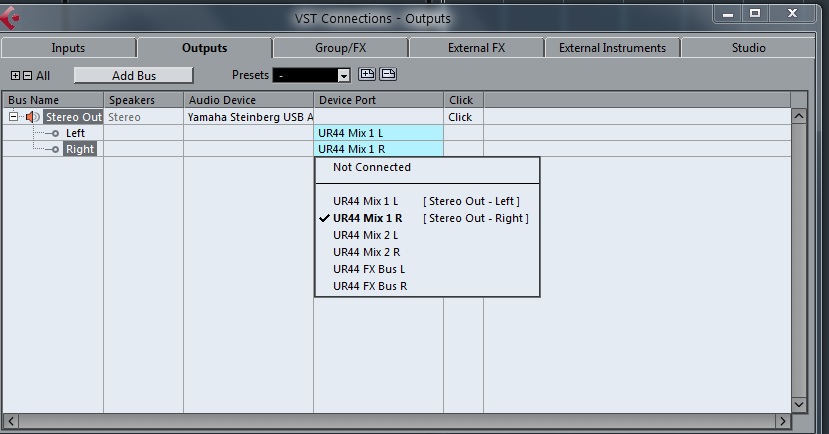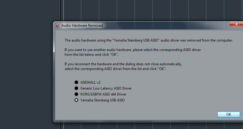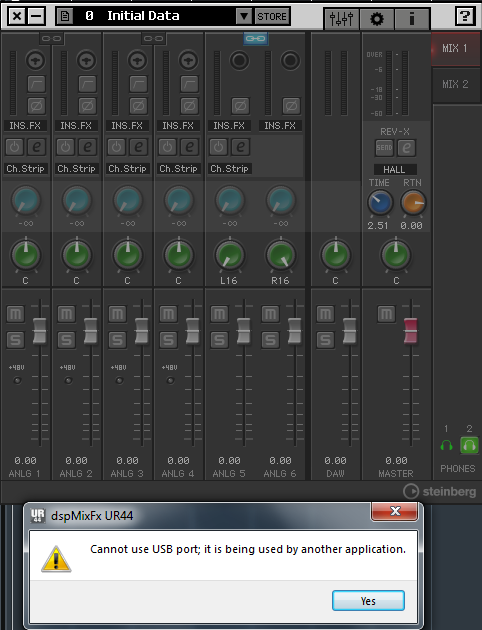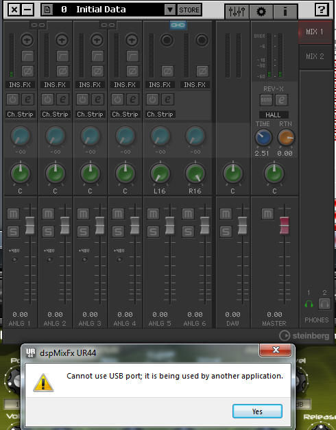 ,.. когда появляется Global Setup (честно сказать в разных версиях Куба, это по разному, в AI7 Elements, подобное происходит в конце запуска, когда появляется Хаб) происходит пропажа звука в мониторах. Входа работают, потому как при перегрузе, вспыхивают красным индикаторы. Но если в Кубе в Device Setup в VST Audio System поставить любой другой ASIO драйвер, но не UR44 карты (что интересно КУБ и карта дело одного производителя), после запуска хоста звук не исчезает. Удалял все, оставлял только драйвер АСИО карты Yamaha Steinberg USB ASIO... все равно отрубается. Замерз на долго, водка не помогает. Жду разумного совета, сам не могу догнать. Карта подключена к компьютеру по USB.