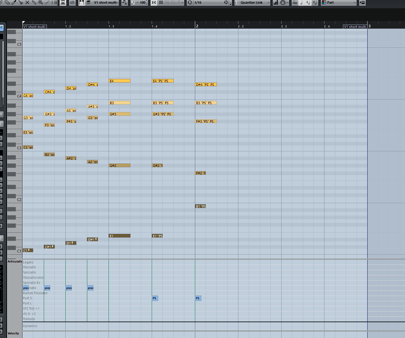 Открываем несколько партии, выделяем нужные и меняем артикуляцию на... допустим стаккато. Но как видно, меняется только у активной партии, но это ж бред) так каждую партию по очереди пощёлкивать - ужас)