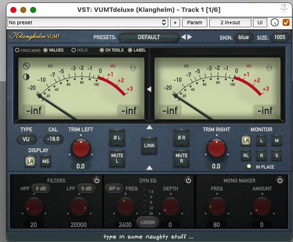 @Dmitry Stepin, А чем пикметры в DAW не устраивают? Или именно VU хочется визуально? Ну мне нравится кланхельм и риперовский