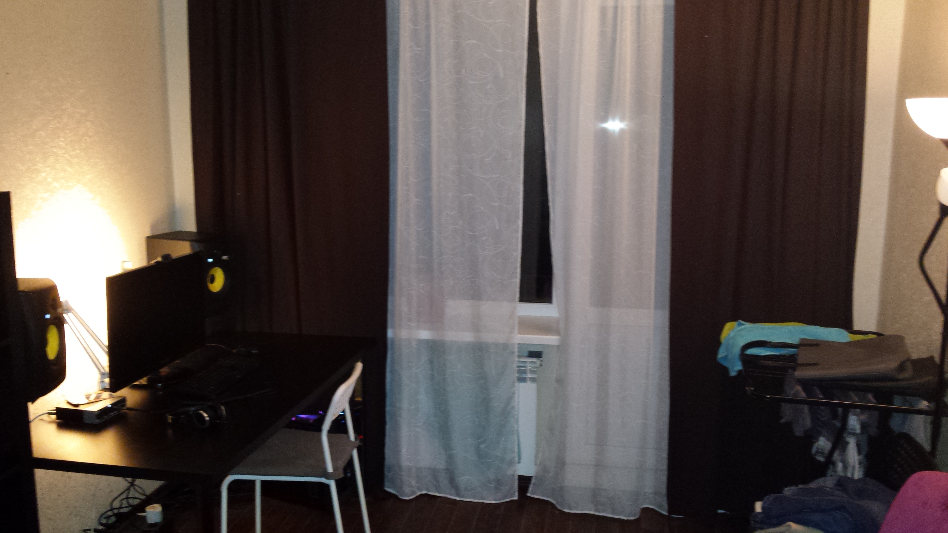 Всем привет! Переехал и завешанной коврами комнаты деревянного дома в квартиру кирпичной пятиэтажки со всеми последствиями (соседи, бетонные стены) (фото прилагаю + панорама)