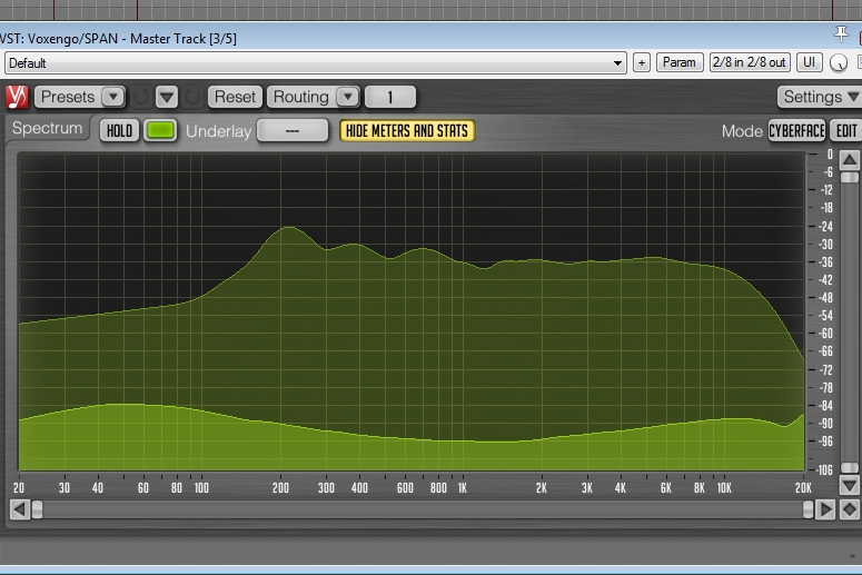 - Я бы подбавил бочку внизу (хотя опять же, как есть - не криминал). Пока-что получается, что в самом низу (до 100 Гц) бас почти переваливает бочку, а выше (100-300) наоборот. В результате ощущение - что бочка звучит выше, чем традиционно, местами выше чем бас, и где-то наровне с рабочим.