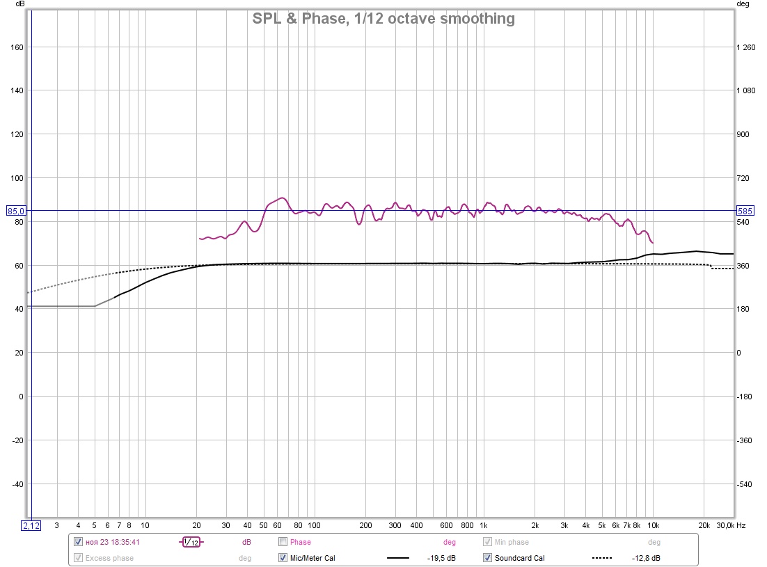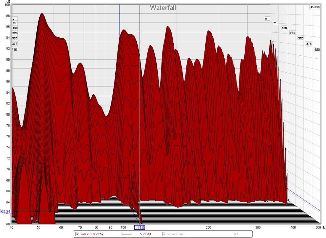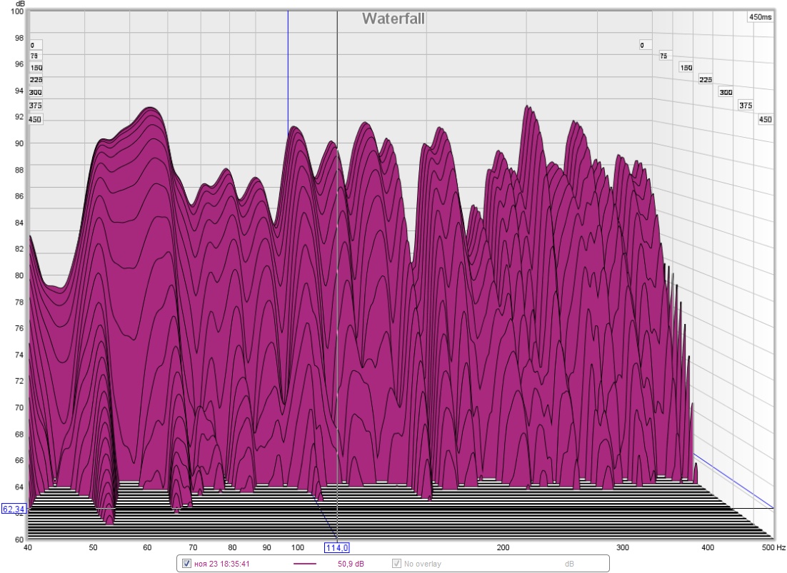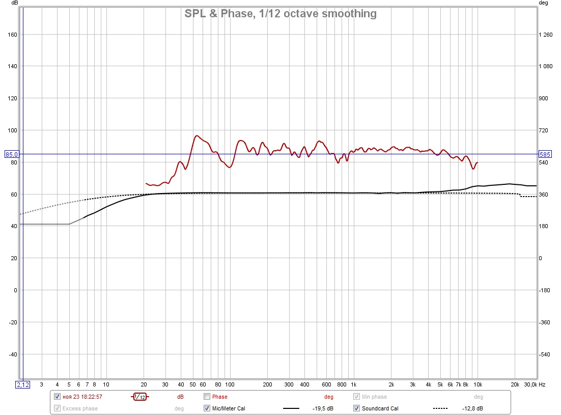 Думаю что Вас будет ждать нечто такое, замерял у себя недавно, снимал конденсаторным микрофоном который имеется в ZOOM H1. Сетка в герцах проставлена вверху, там где маркеры.