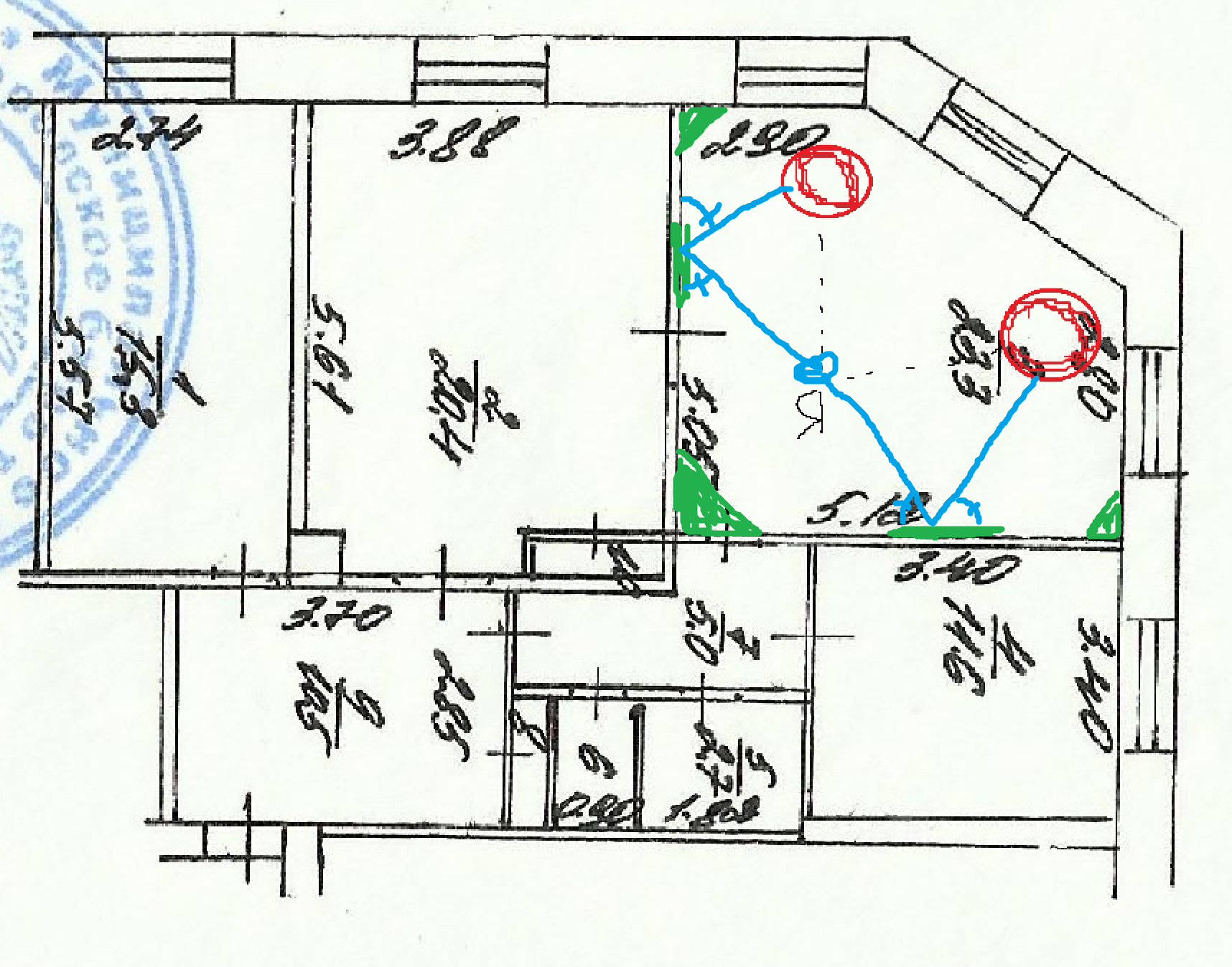 Вот,сделал более ли менее нормальный план того,что сейчас есть в комнате.Как думаете,имеет ли смысл городить большие конструкции слева и справа(бежевым сделал) из минваты или же сделать,как советовали выше?Измерения комнаты пока такие вот..