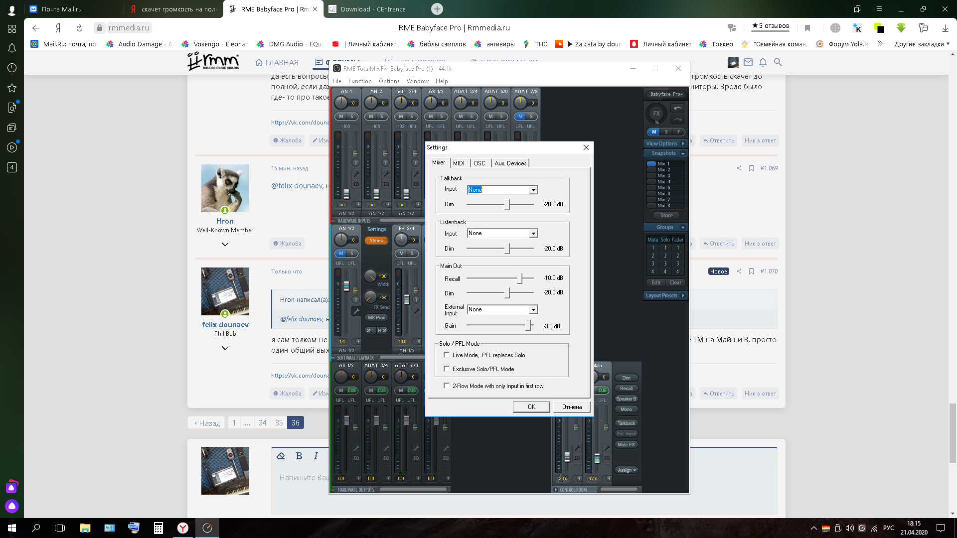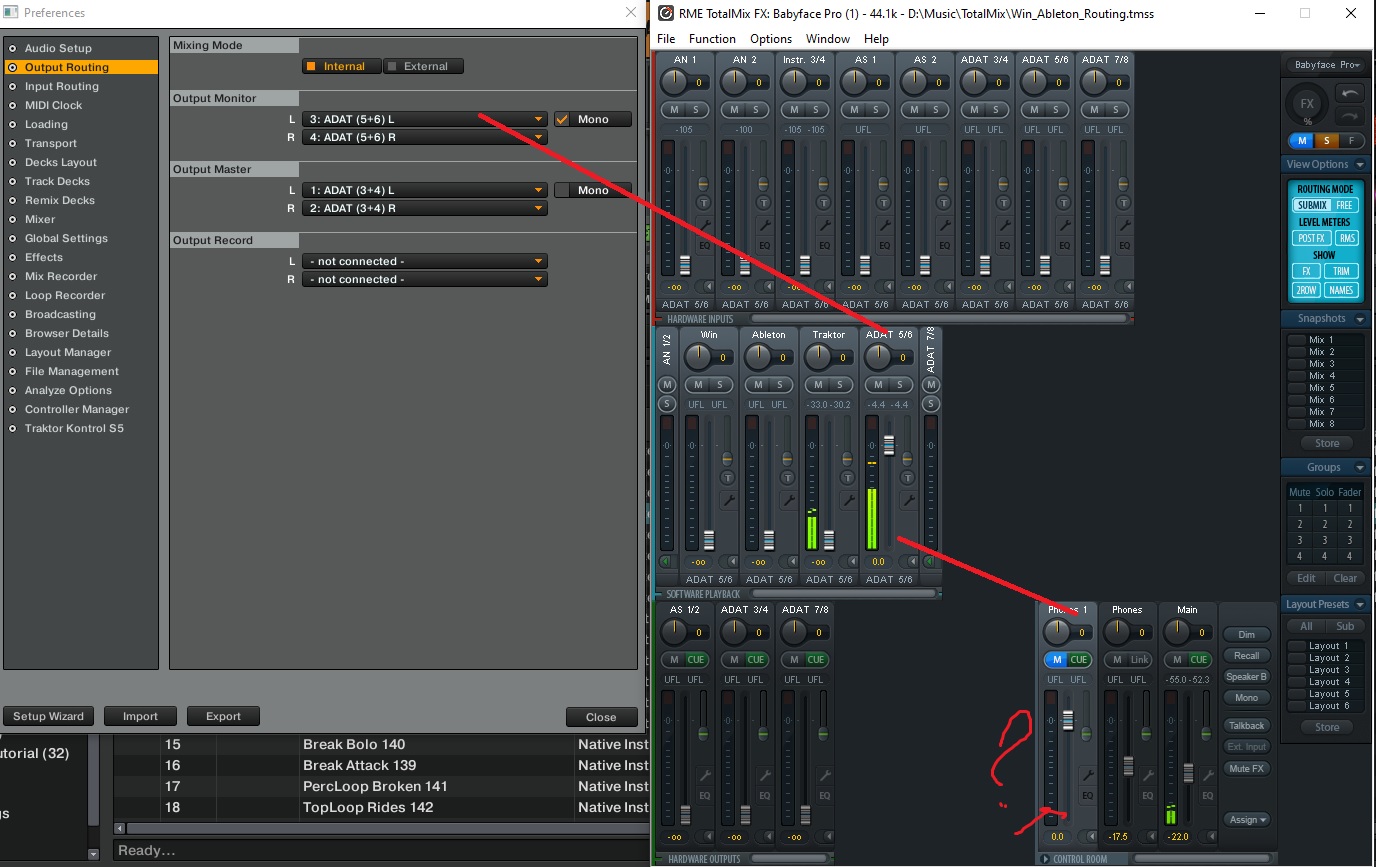 В самой программе я не стал мудрить, выбрал два разных канала для вывода на мониторы, другой на наушники, но я что-то не пойму, у меня весь звук или идёт в наушники или на мониторы, уверен все это можно сделать в Тоталмиксе раздельно, вопрос как.