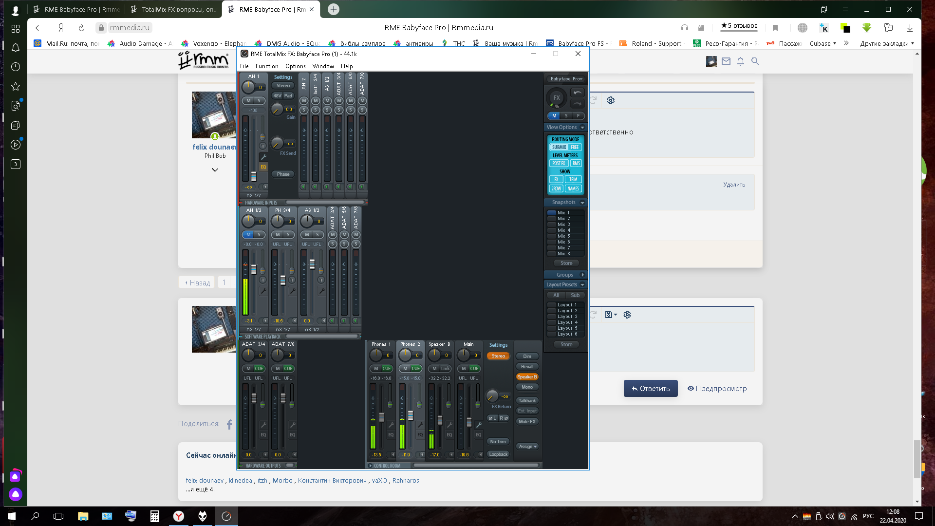 Привет парни, Маленький вопрос по настройке. У меня 2 пары мониторов, при переключении снапшотов горячими клавишами , где мьютируется майн и размьютируются посылы на наушники (для вторых мониторов) не регулируется звук главным регулятором на панели карты, пока не тыкнешь в тотал миксе или на самой карте кнопку out) как это решить можно? спасибо заранее=)