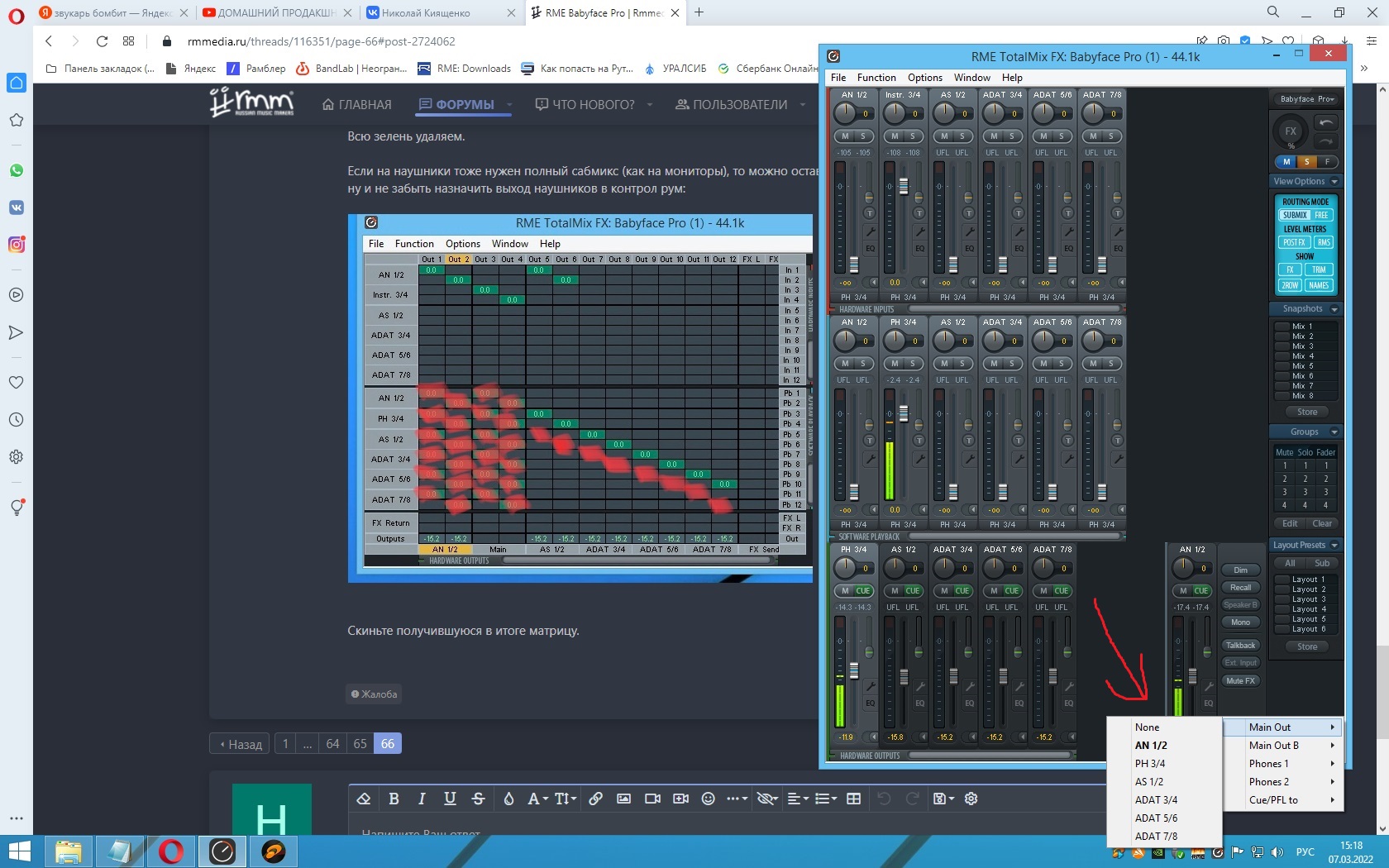 В выпадающем списке (далее «список Assign») наводим курсор на Main Out. В раскрывшемся при этом списке с выходами кликаем на AN 1/2: