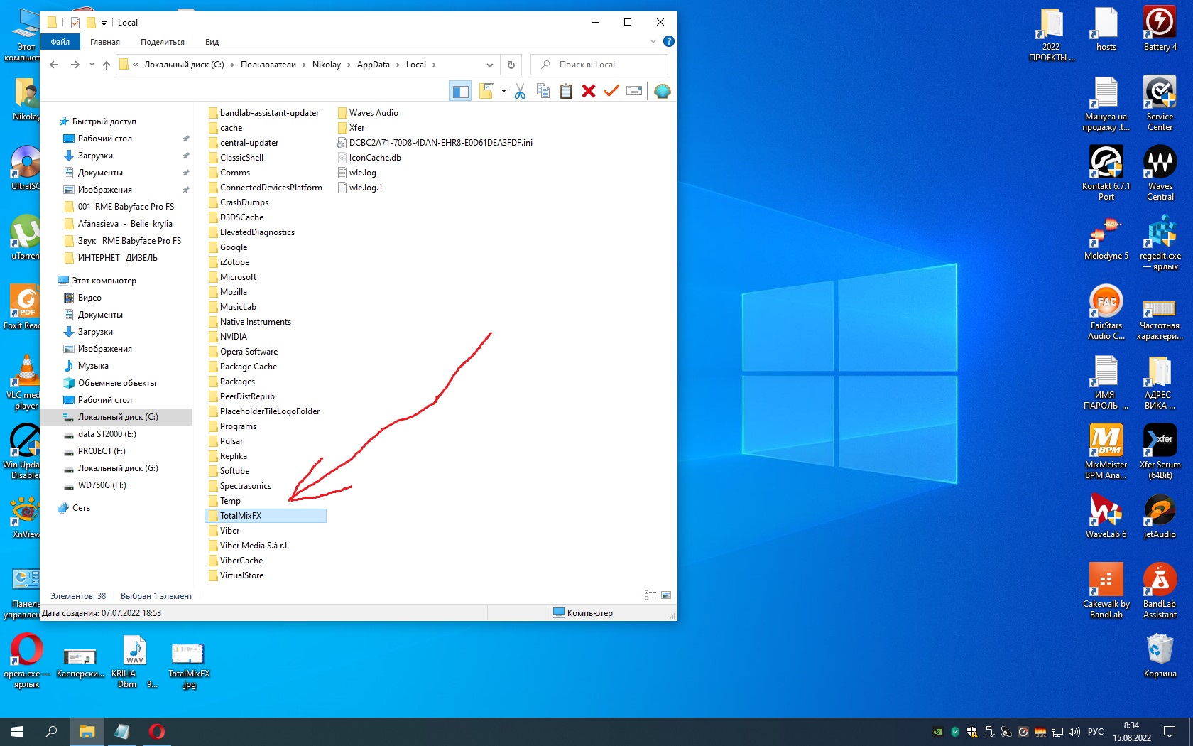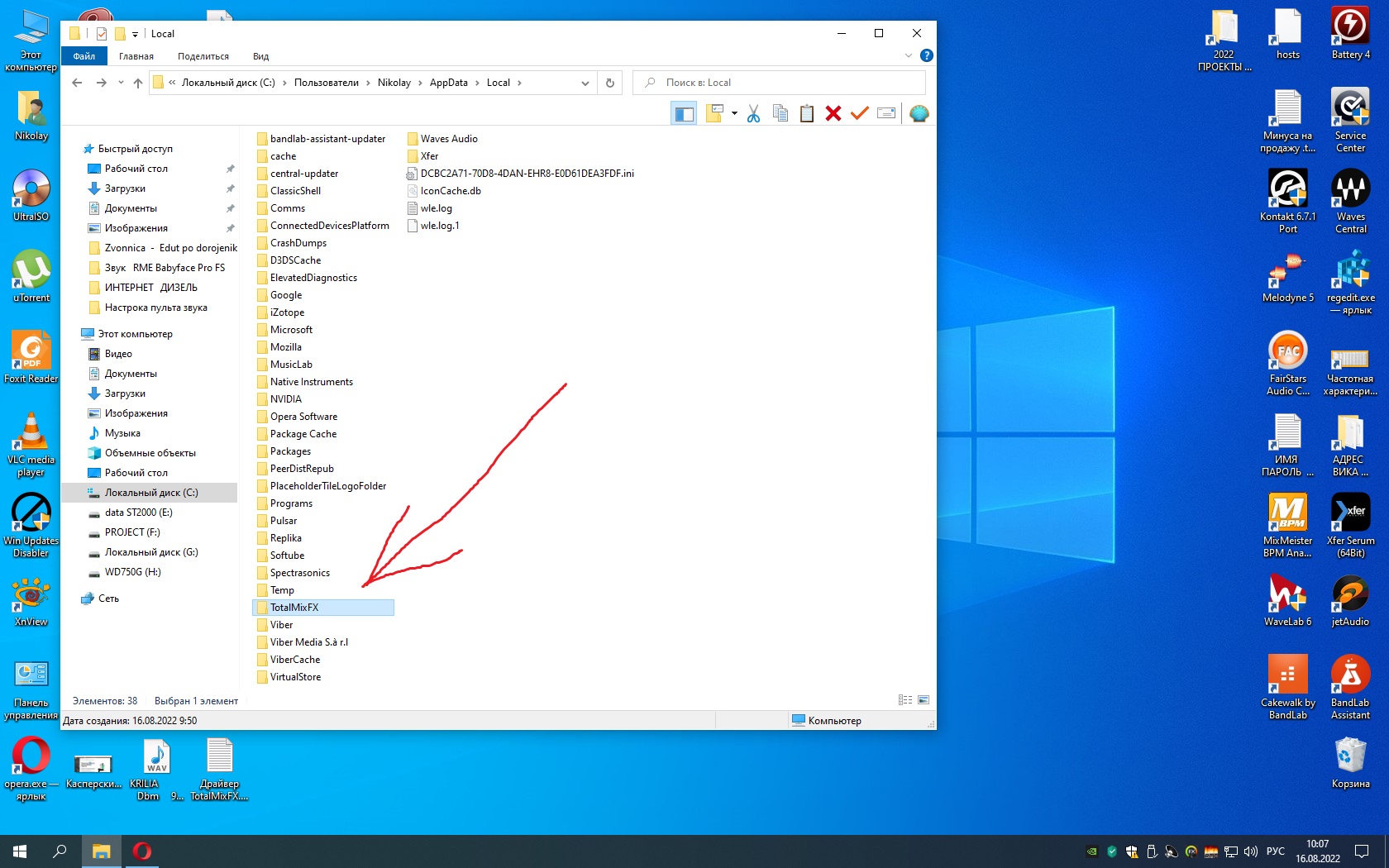 Пол дня переустанавливал. Всё равно кидает папку TotalMixFX в другое место. Рис.
