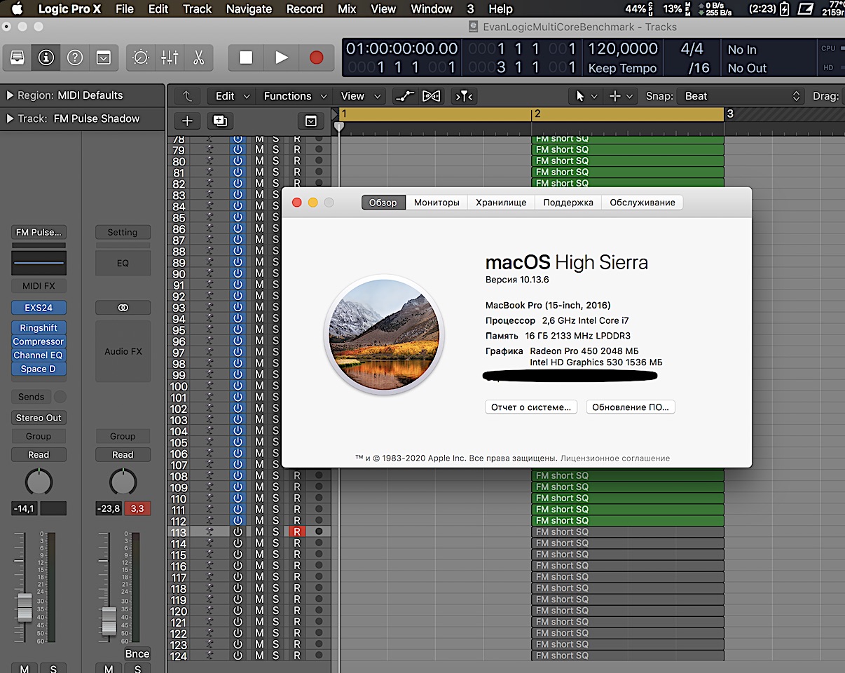 Ну и потом сравните с другими результатами вот здесь https://www.gearslutz.com/board/logic-pro-x/371545-logic-pro-multicore-benchmarktest.html
