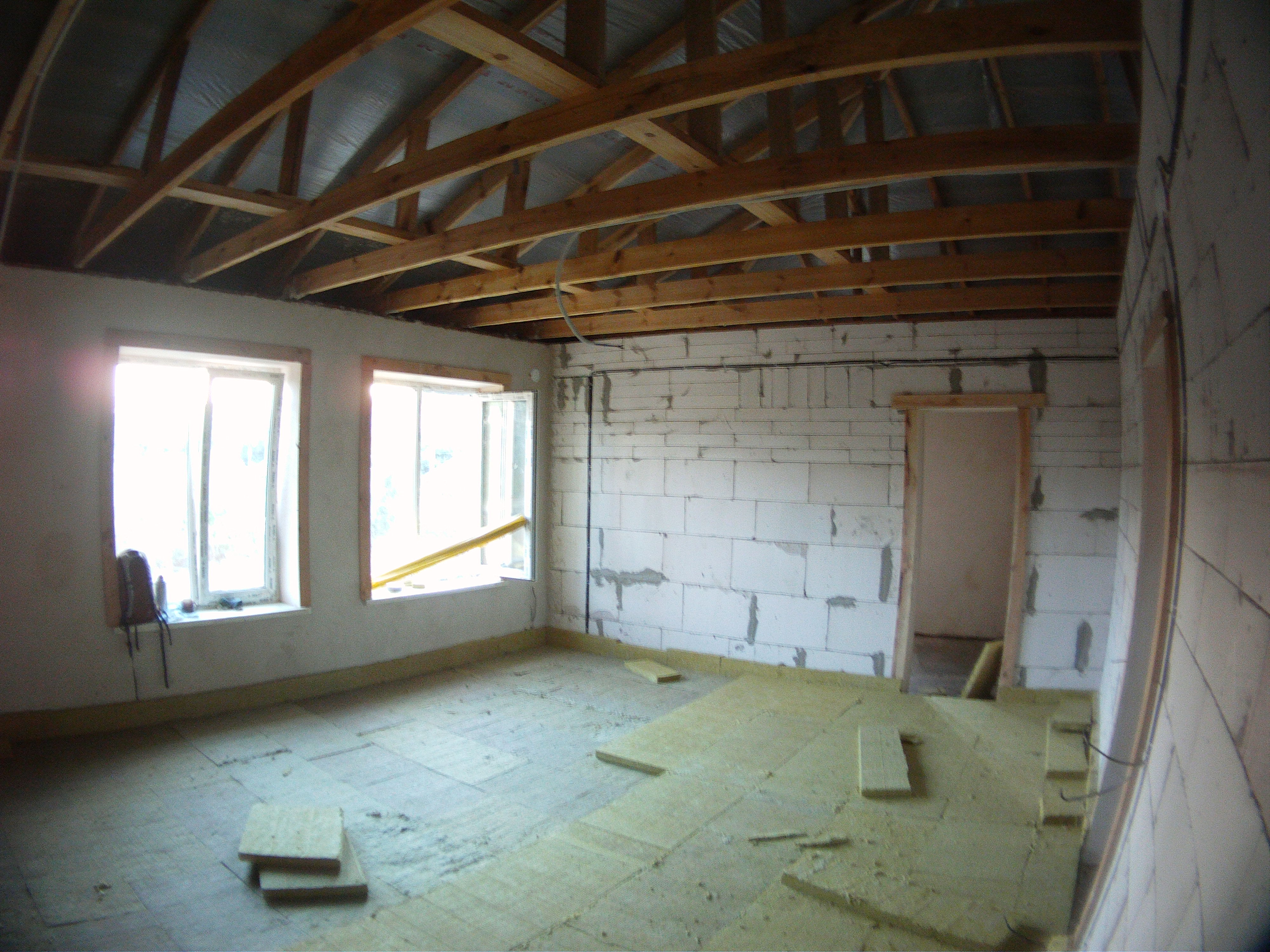 В будущем маячят кривые потолки под четырехскатной крышей, но об этом пока рановато думать.