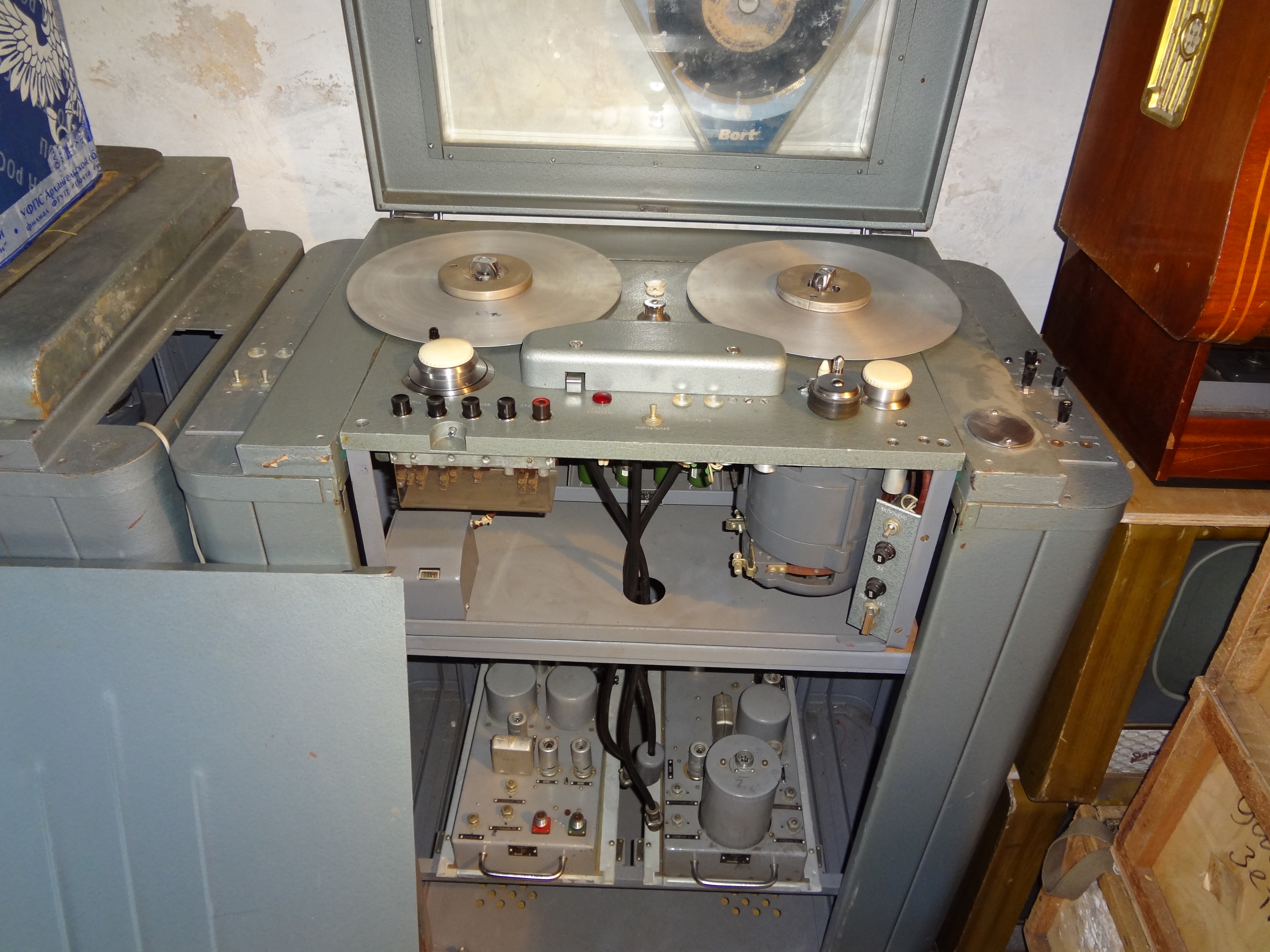 Да, да огромные они и тяжелые и в оригинале серые ) Это ламповые моно магнитофоны