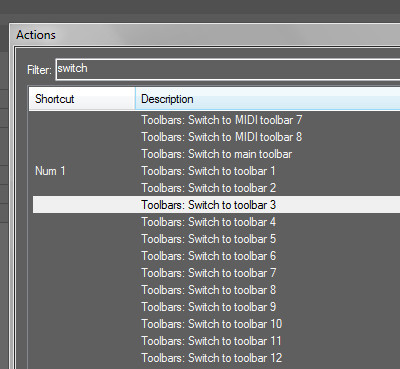 Вы реально не поняли. Я же прикреппил мультик. Экшен Switch toolbar... переключает тулбар в той секции на которой фокус. Если до использования экшена Вы чего-то тронули в main-секции, то там и переключится тулбар. А мне нужно, чтобы он всегда переключался в секции at top of main window. Проверьте сами.