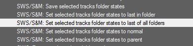 2. Экшен SWS/S&M: Set selected tracks folder states to last of all folders не исключает выделенный трек из папки, он делает этот трек последним в папке, таким образом исключая из папки все следующие за ним треки.