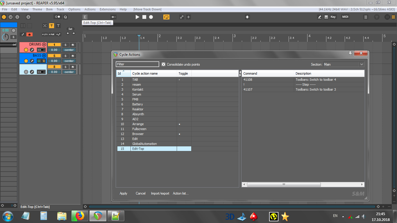 Други, здравствуйте!Есть простой экшн "Previous Sample"(меняет семпл на следующий).Проблема в том ,что он меняет семплы которые находятся в папке где сделан проект.Допустим мне нужен из другой папки семпл малого барабана...открываю Media Explorer,папку со Snares,копирую на трек,далее экшн "Previous Sample" и лажа....меняет семплы которые находятся в папке где сделан проект,а не из папки где Snares .Как с этим жить?