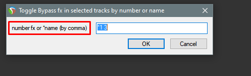 local retval, str = reaper.GetUserInputs("Bypass fx in selected tracks by number",1,"number fx by comma,extrawidth=150","");