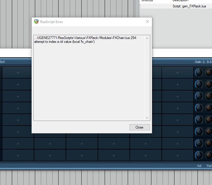 Ребят, подскажите, кто шарит. Перестал работать FXRack От EUGEN27771. Сам скрипт на канал загружается, но после попытки загрузить любой vst плагин выдает ошибку